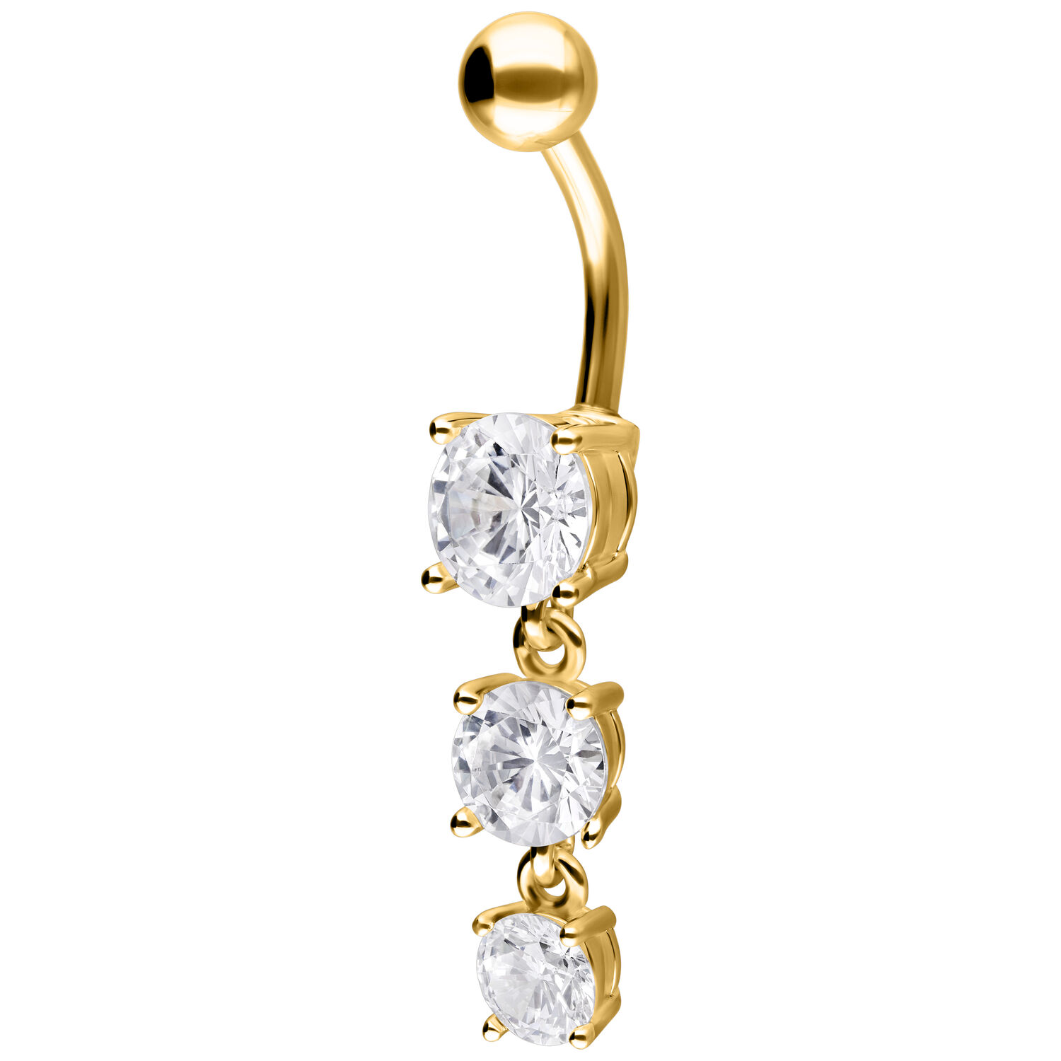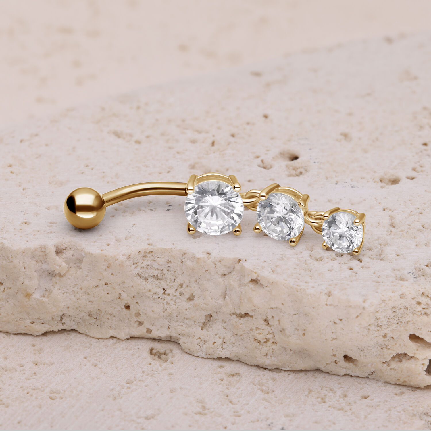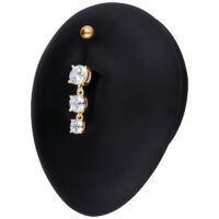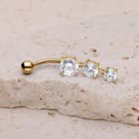 Rakastatko kaikkea kimaltavaa ja säihkyvää? Silloin tämä napakoru on juuri sinulle sopiva. Three Crystals Bananabell -lävistyskorussa on kolme kristallinkirkasta kiveä, joiden koot ovat 7,0, 6,0 ja 5,0 mm. Yläosan kaarevassa varressa on irrotettava 5,0 mm pallo. Molemmat osat on valmistettu korkealaatuisesta titaanista. Kristallien istutukset ovat 925 sterlinghopeaa.