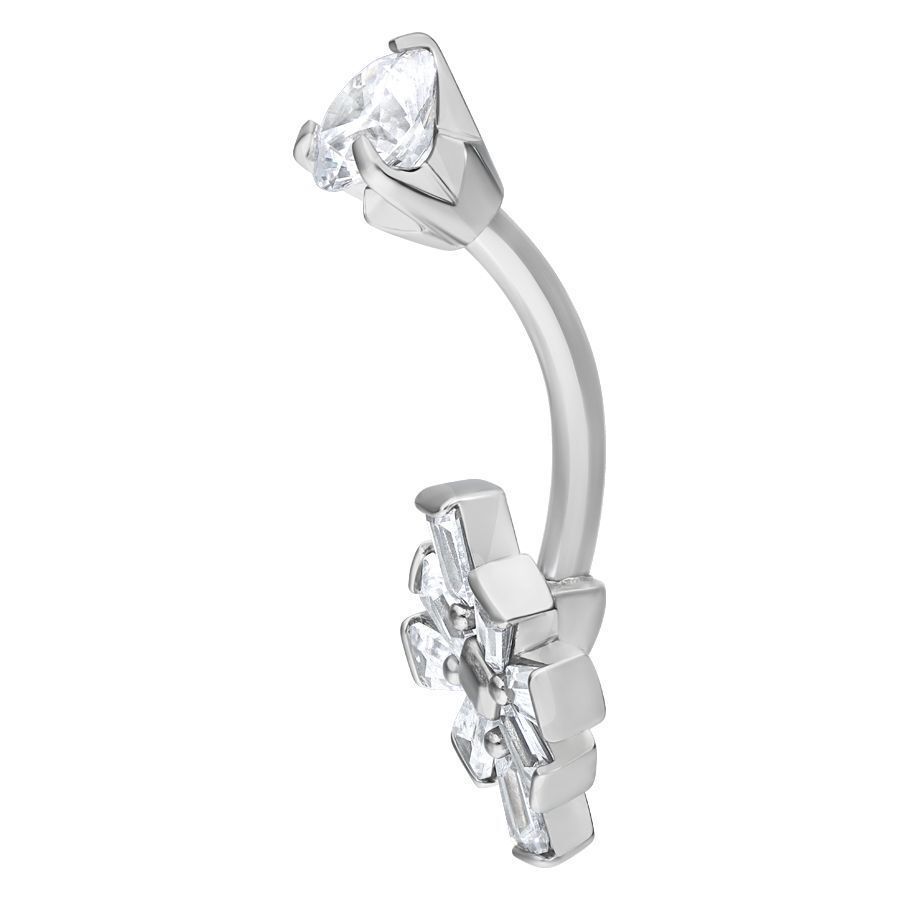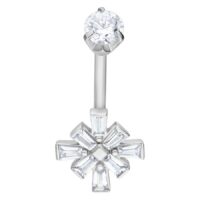 Tämä Oriental Namid Bananabell -lävistyskoru on samaan aikaan itämainen ja ylväs, ja se on koristeltu kimaltelevilla, kuutiomaisilla zirkonikivillä. Banabellit on valmistettu ruostumattomasta teräksestä ja varrenn paksuus 1,6 mm.