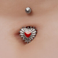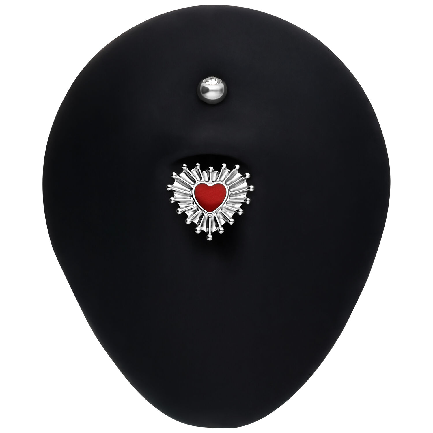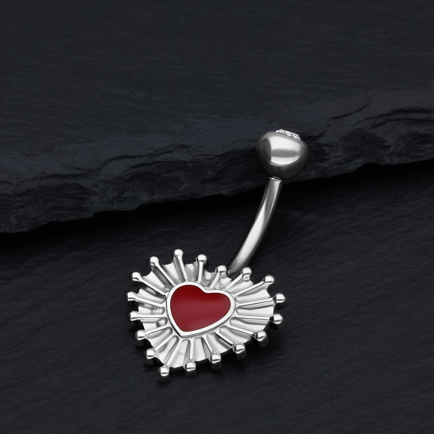 Tämä ainutlaatuinen titaaninen Sacred Heart Bubble Enamel Bananabell -lävistyskoru yhdistää hengellisen symboliikan ja modernin tyylin. Ikoninen sydän loistaa syvänpunaisena, säteilevän siluetin kehystämänä – intohimon, rakkauden ja sisäisen voiman symbolina.