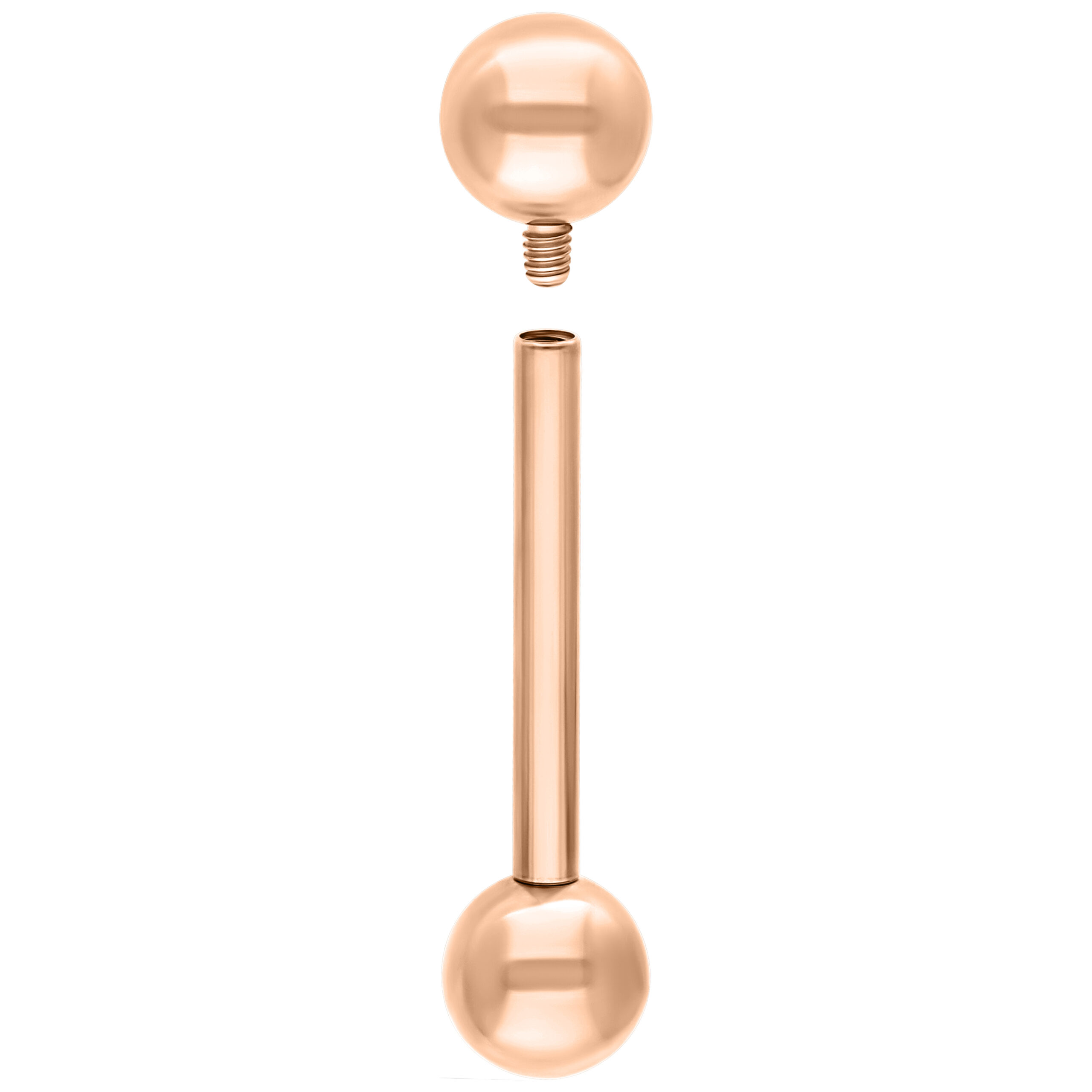 Titan Rosegold – Fine Internally Threaded Barbell -lävistyskorun molemmissa päissä on irrotettavat pallot (korussa on tanko ja kaksi palloa). Korumallistomme kierteet ovat standardoituja, jotta voit yhdistää palloja, tankoja ja kiinnikkeitä keskenään!