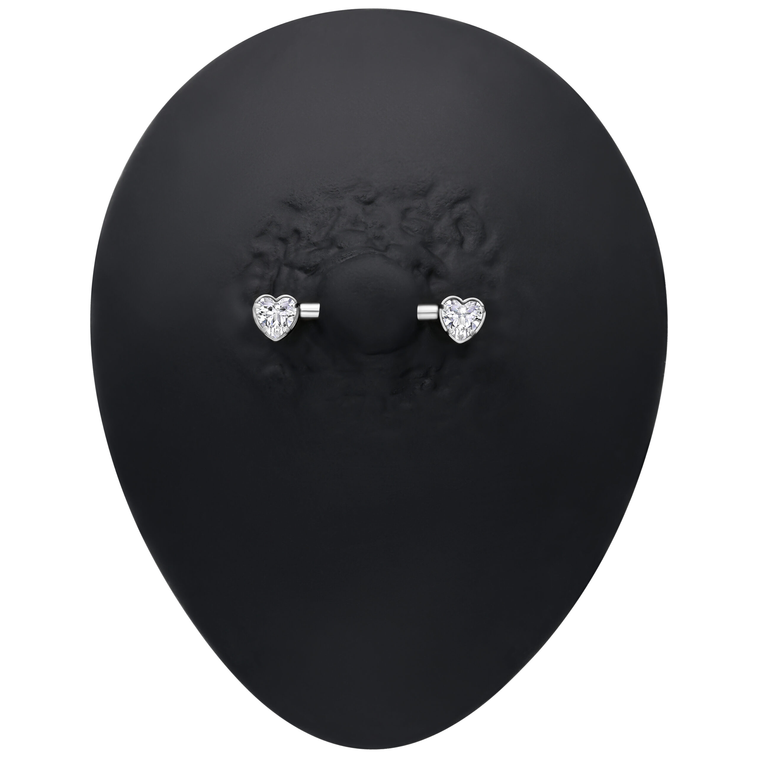 Nännilävistys vailla nännikorua? Heart Barbell – nännikoru on osa Titan Basicline -mallistoamme ja on siten valmistettu korkealaatuisesta, valinnan mukaan hopean tai kullanvärisestä titaanista. Kaksi upotettua, sydämenmuotoista kristallia, jotka hohtavat upeasti valon osuessa niihin, tekevät korusta todella kauniin.