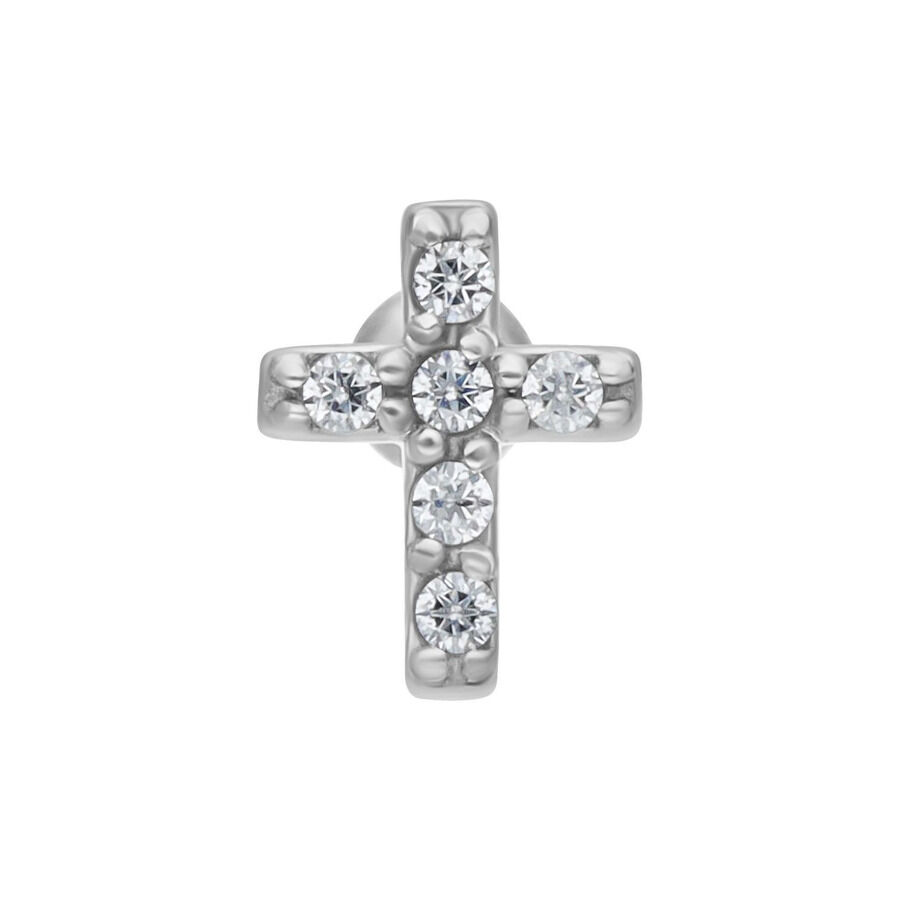 Der Earbarbell ist mit Zirconia Kristallen besetzt und besteht aus hochwertigem 316L Edelstahl. Die hintere Kugel ist fest, das vordere Kreuz hat ein Außengewinde und der Stab ein Innengewinde mit einem Gewindedurchmesser von 0.8 mm. Der gesamte Aufsatz hat eine Größe von 5.0 mm.