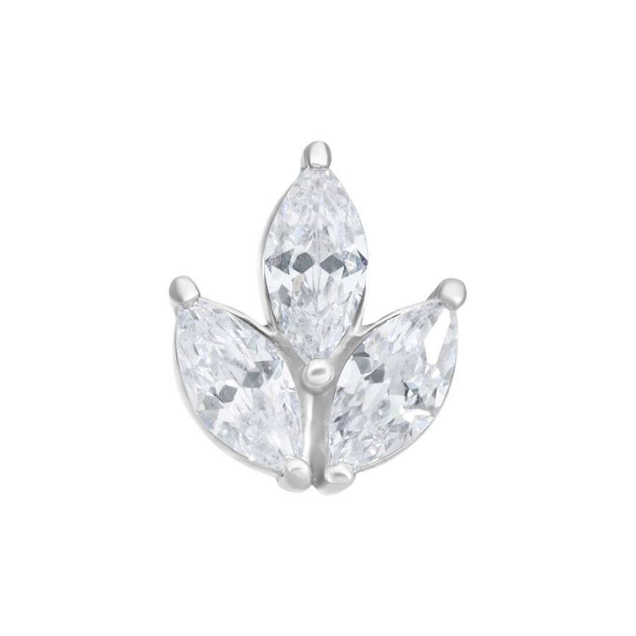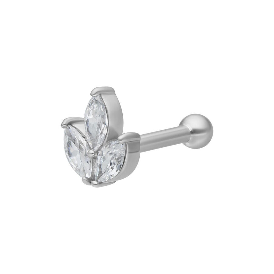 Tämä kaunis barbell-korvakoru on valmistettu 316L ruostumattomasta teräksestä ja se on hopeanvärinen. Marquise Earbarbell -barbellit on koristeltu kauniilla koristeosalla, jossa on kolme kristallinkirkasta kiveä.