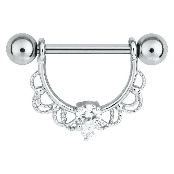 Tämä huippulaadukas Nipple Barbell -nännilävistys on valmistettu luonnollisen värisestä ruostumattomasta teräksestä. Se koostuu kahdesta kirkkaasta kristallista.