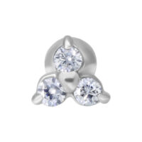 Der Earbarbell ist mit drei Zirconia Kristallen besetzt. Die hintere Kugel ist fest, der vordere Aufsatz ist durch ein Innengewinde mit einem Gewindedurchmesser von 0.8 mm abzuschrauben. Der gesamte Aufsatz hat eine Größe von 3.5 mm.