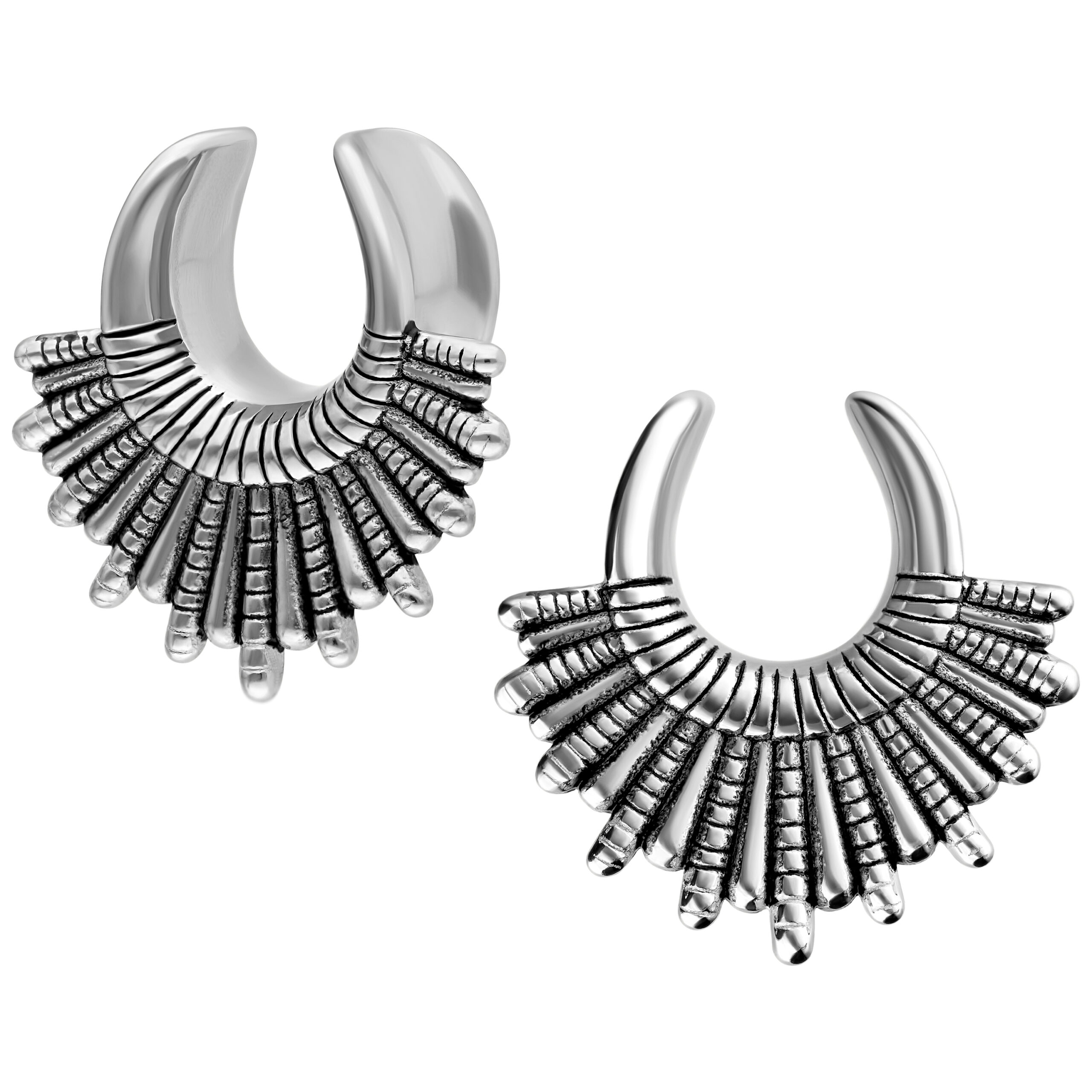 Rakastatko erikoisia muotoja? Sitten uudet Ear Saddle Indiana -lävistyskorut ovat täydelliset juuri sinulle! Ergonomisen muotonsa ansiosta korut ovat erittäin mukavia käyttää venytetyissä korvien rei’issä. Ear Saddleja asetettaessa on erittäin tärkeää, että ne asetetaan ensin sivuttain ja vasta sitten käännetään hitaasti lopulliseen asentoon