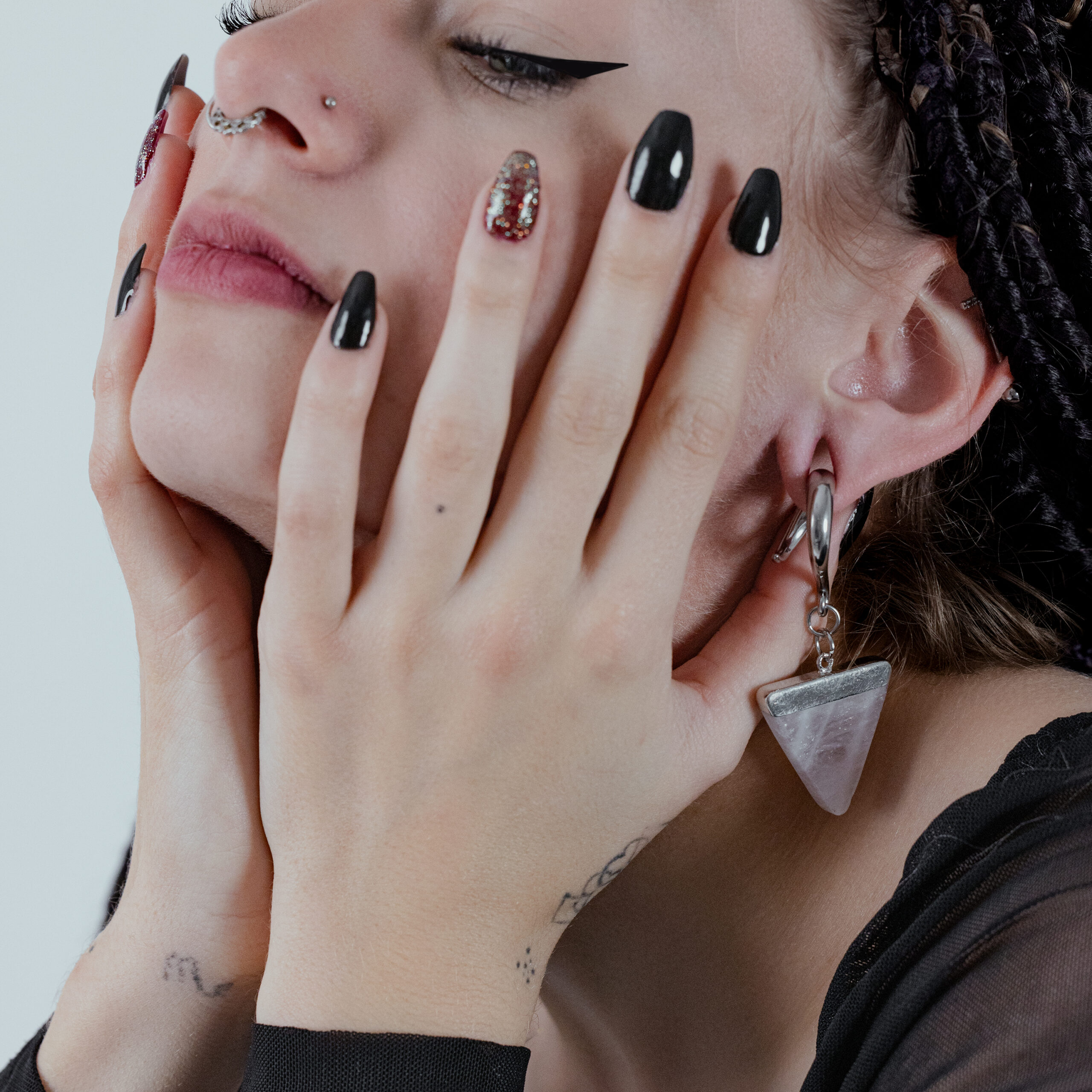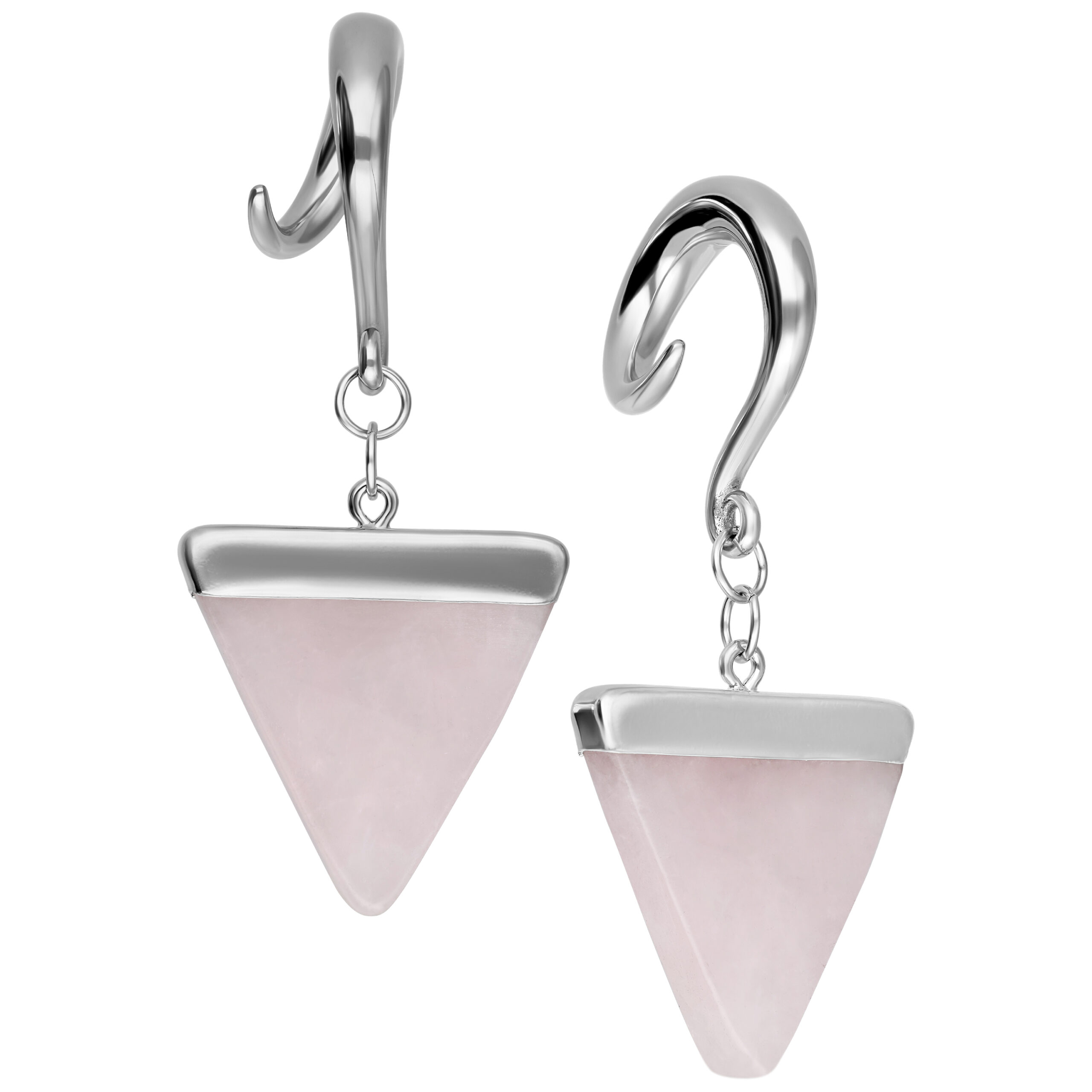 Kauniit kolmion muotoiset luonnonkivikorvapainot ruusukiviriipuksella. Oletko yhtä mystinen kuin vaikuttavat luonnonkivet? Sitten nämä korvapainot ovat juuri sinua varten!