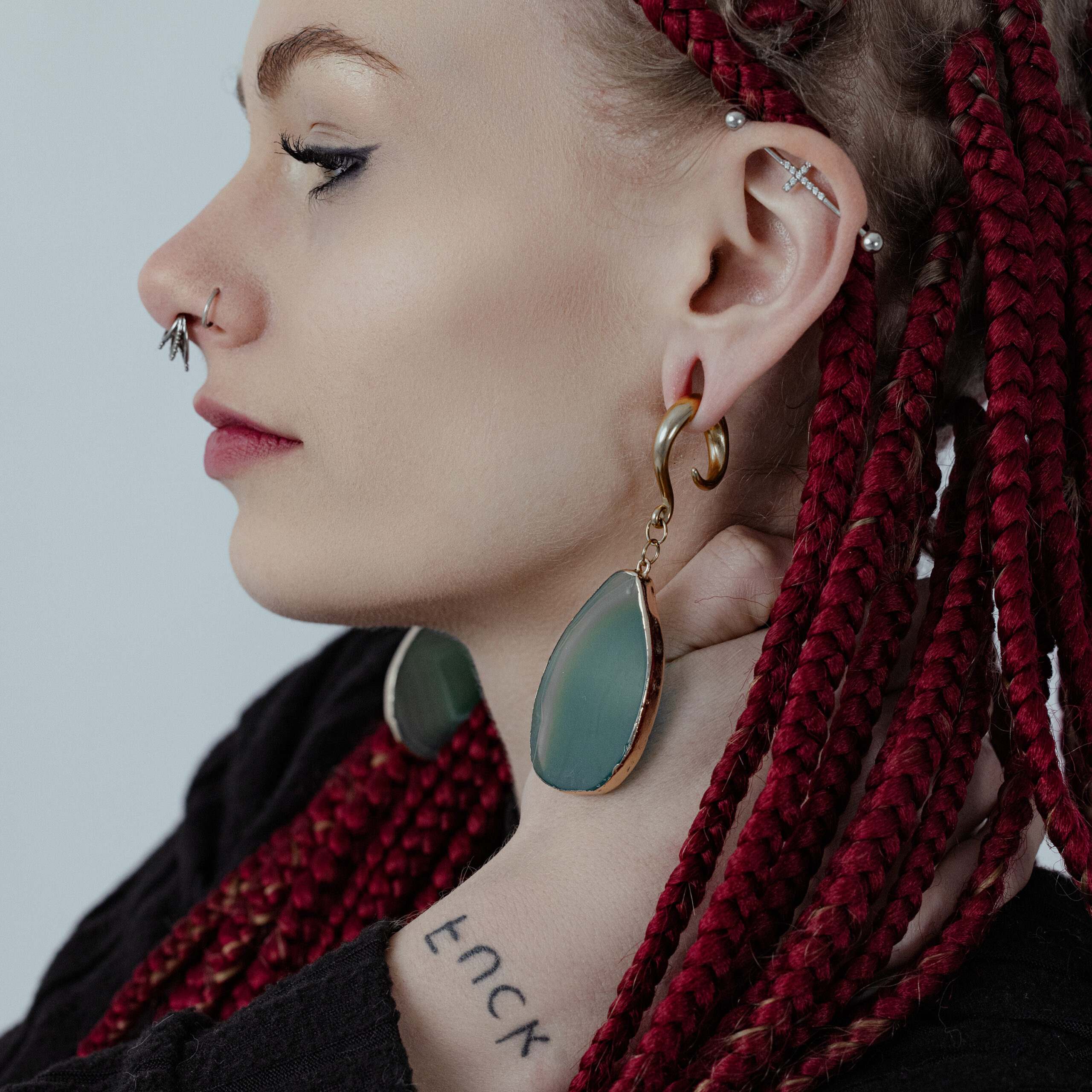 Toisin kuin tunnelikorut, nämä hienot korvapainot myydään pareittain. Koukut on valmistettu korkealaatuisesta 316L kirurginteräksestä, riipus luonnonkivestä. Poista ne ennen uimista tai suihkussa käyntiä.