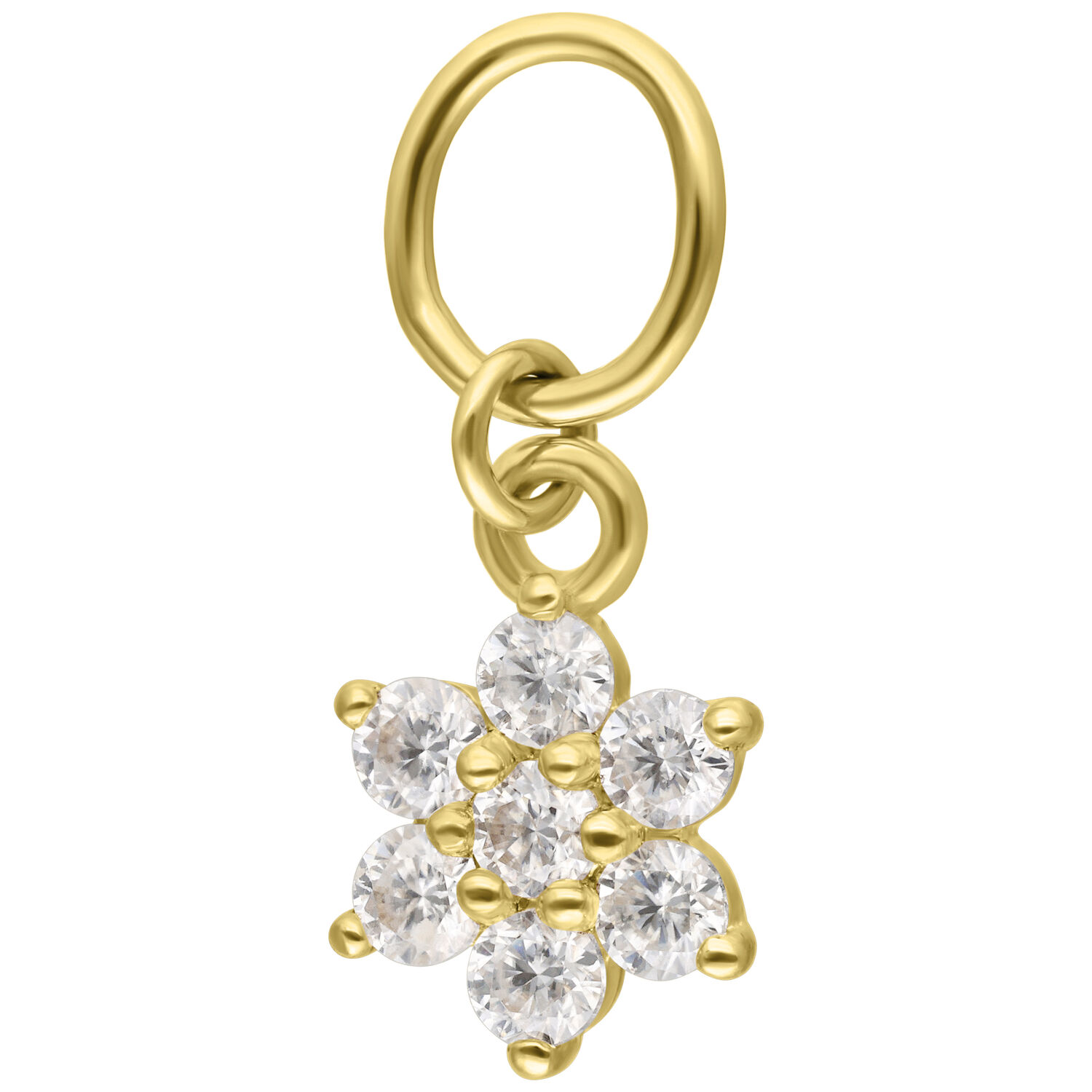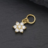 18K Moissanite Flower -riipus ilmentää eleganssin ja naisellisuuden ydintä. Kiillotetusta 18 karaatin (750) keltakullasta valmistettu hienostunut lävistysriipus esittää herkkää kukkamuotoilua, joka symboloi harmoniaa, kasvua ja voimaa.