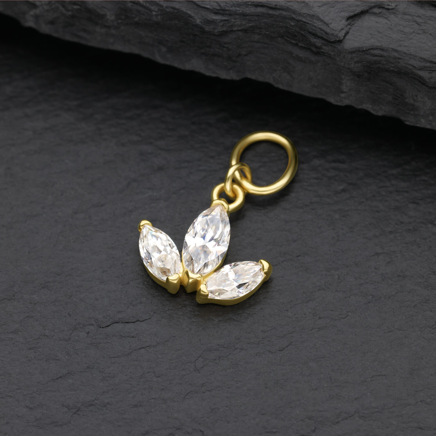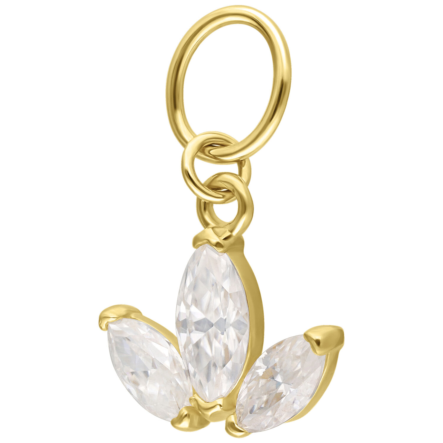 18K Moissanite Lotus -riipus yhdistää henkisen symboliikan ja säteilevän ylellisyyden. Kiillotetusta 18 karaatin (750) keltakullasta valmistettu elegantti lävistysriipus esittää herkkää lootuskukan muotoilua – ajaton puhtauden, uudistumisen ja voiman symboli.
