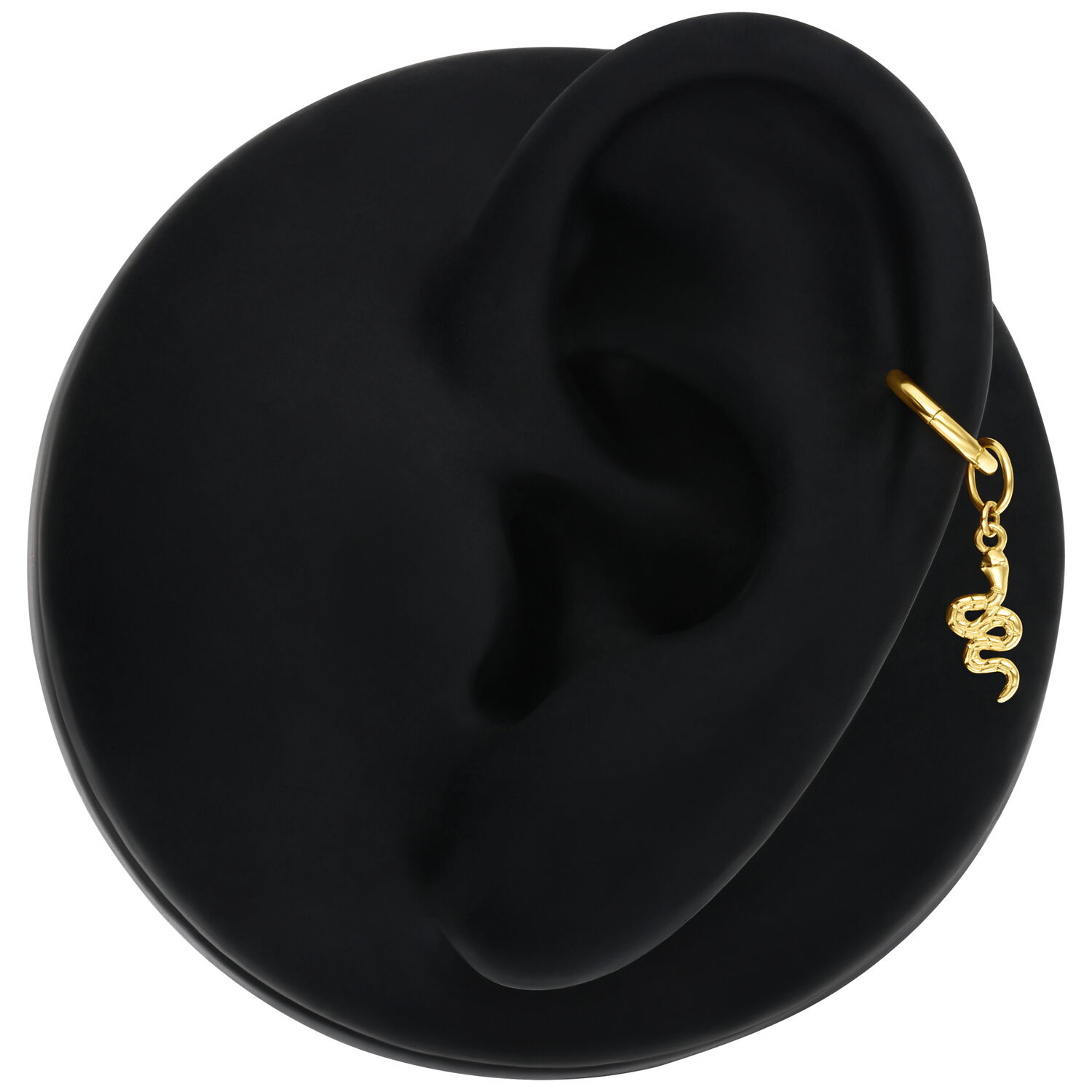 18K Snake -riipus yhdistää ajattoman ylellisyyden rohkeaan ja symboliseen muotoiluun. Kiillotetusta 18 karaatin (750) keltakullasta valmistettu premium-lävistysriipus vangitsee katseen hienostuneella käärmemotifillaan – joka edustaa muutosta, voimaa ja seksuaalisuutta.