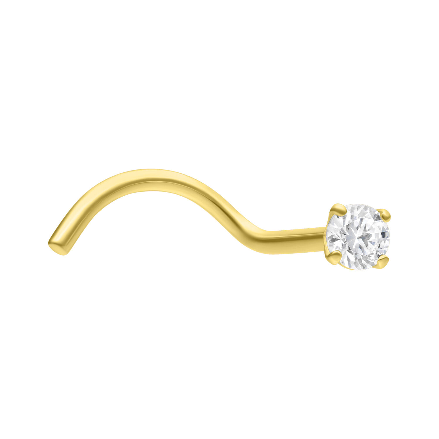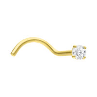 Tämä ylellinen 18 karaatin keltakullasta taottu kristallikoristeinen nenäkoru on upea valinta nenälävistykseesi. Kaarevan hännän ansiosta koru pysyy tiukasti paikoillaan, mutta voidaan aina tarvittaessa irrottaa uudelleen helposti ja nopeasti.