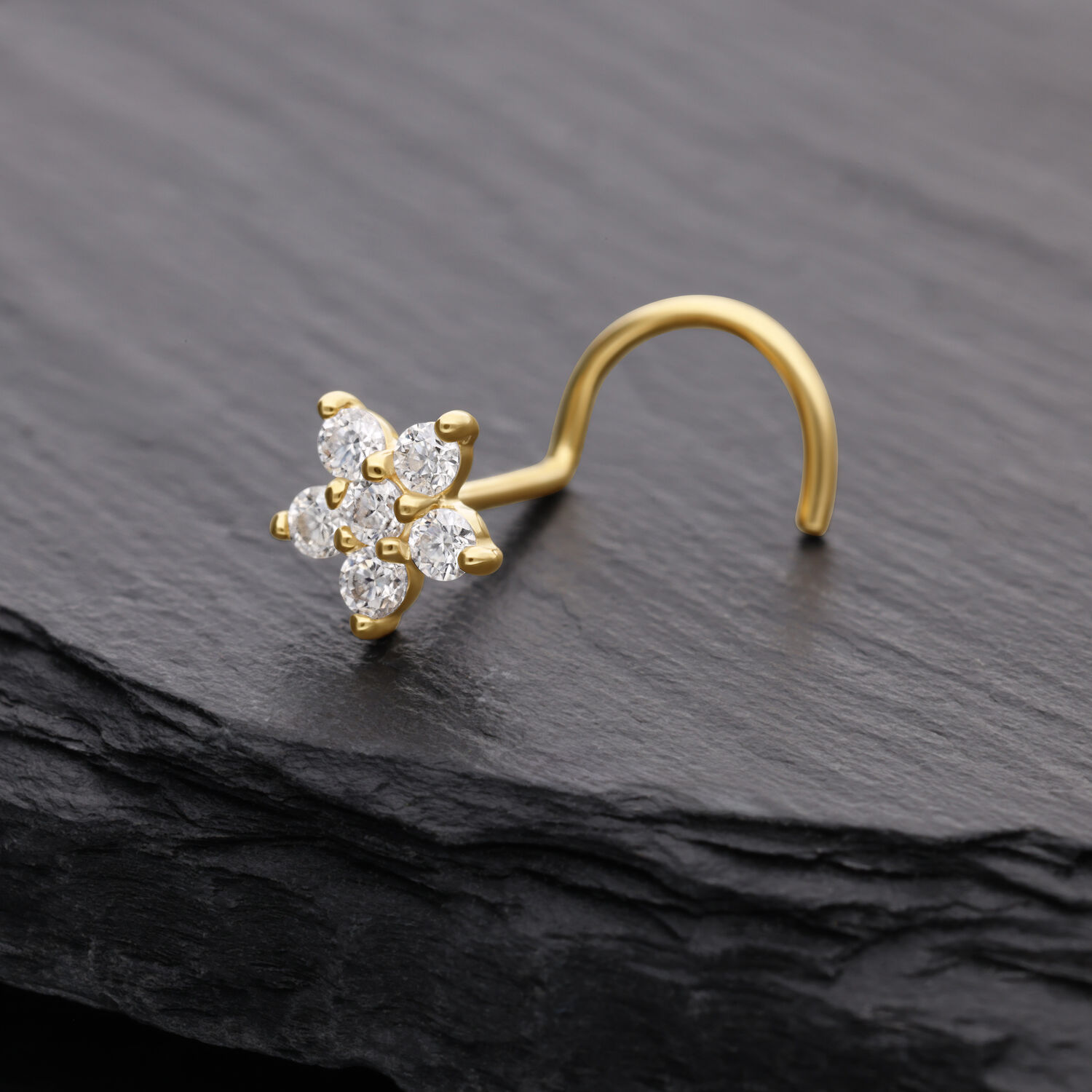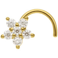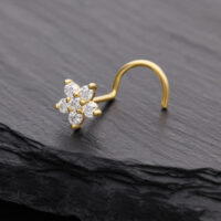 Elegantti 18K Moissanit Flower -nenäkoru on valmistettu hienosta, kiillotetusta 18 karaatin (750) keltakullasta, yhdistäen ensiluokkaiset materiaalit ja ajattoman eleganssin. Hienostunutta kukkamuotoilua koristaa viisi säihkyvää moissaniittikiveä, jotka heijastavat poikkeuksellista loistoa ja hienovaraista kauneutta.