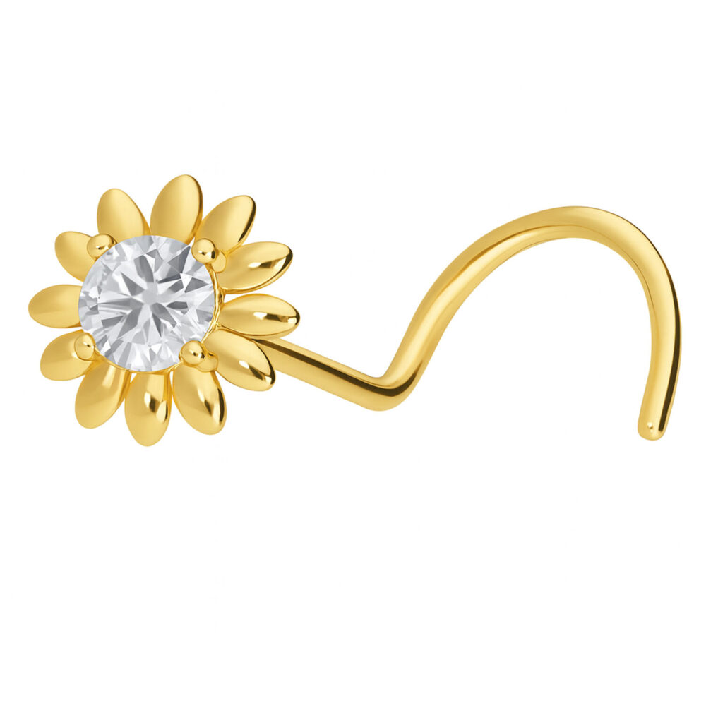 This radiant 18K Moissanite Sunflower Nose Stud combines luxurious craftsmanship with delicate design. Made from polished 18-karat (750) yellow gold, it features an intricately detailed sunflower motif that symbolizes warmth, vitality, and elegance.