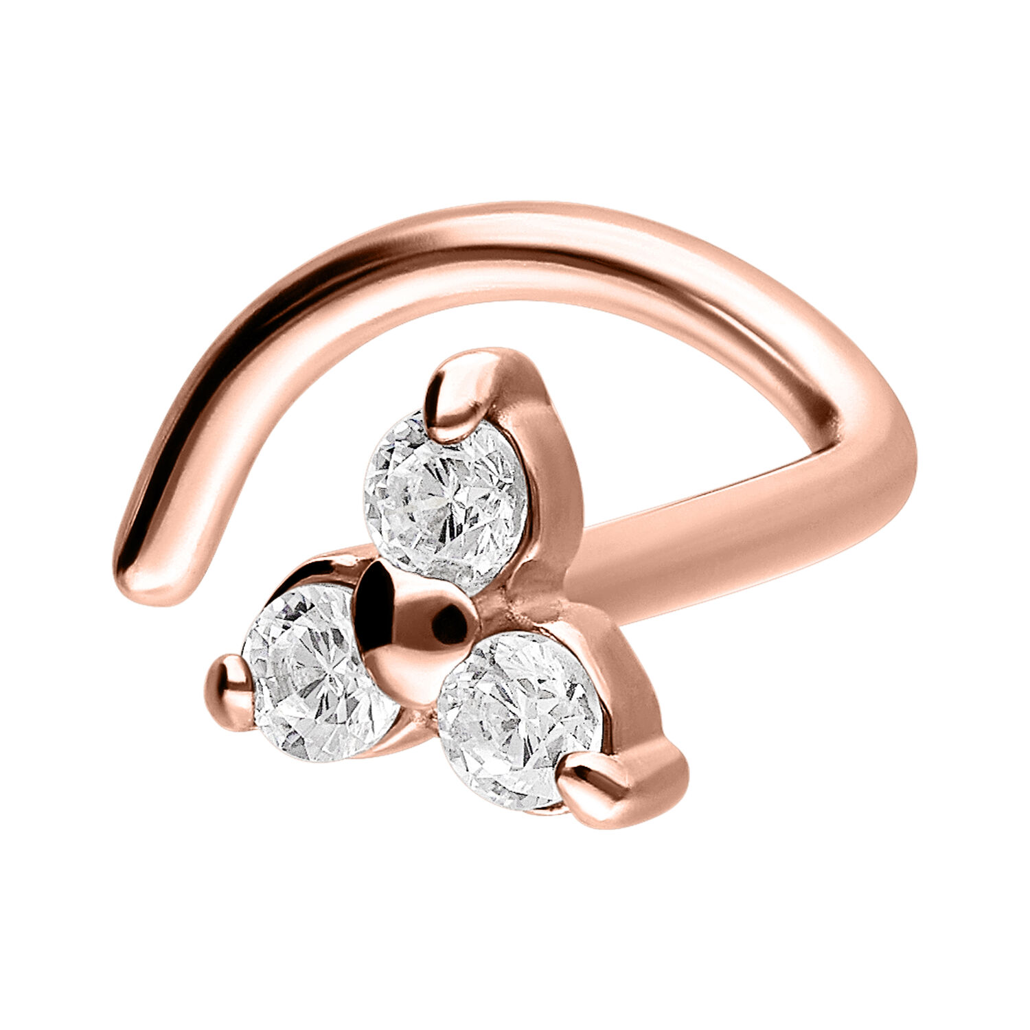 Der Trinity Nosestud aus unseren Edelstahl Kollektionen ist der unauffällige Stecker für Deine Nase, der nicht zu groß aufträgt. Dank seines gebogenen Tails bleibt er felsenfest an seinem Platz, kann er aber auch ohne Probleme wieder entfernt werden. Der Stecker sticht durch die drei strahlenden Kristalle hervor.