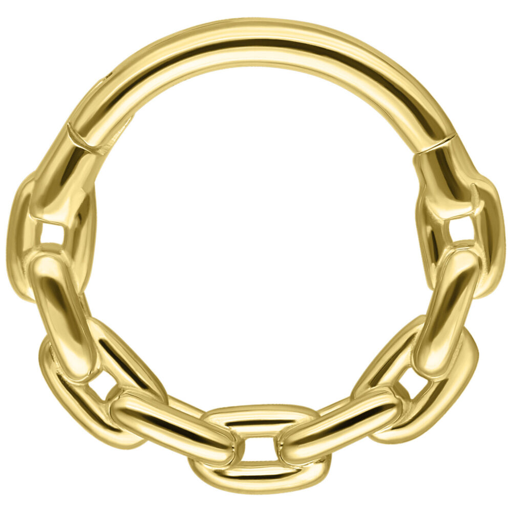The 14K Chain Ring brings timeless elegance to your piercing collection. Made from solid 14 karat gold, this fine chain design wraps around your piercing with effortless sophistication – delicate, flexible, and full of shine.