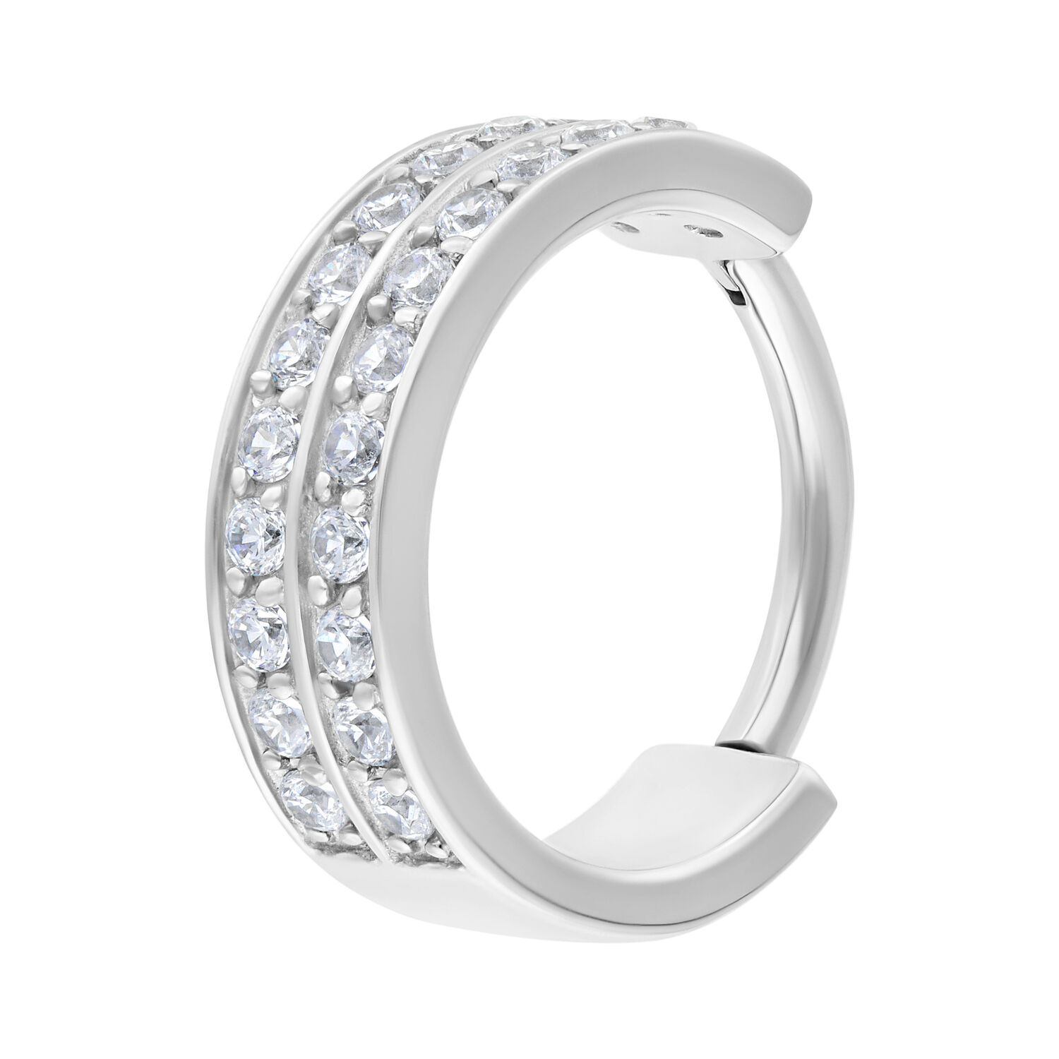 Unser hochwertiger Hinged Ring ist mit vielen klassischen gefassten und geschliffenen Zirkonia Kristallen besetzt.