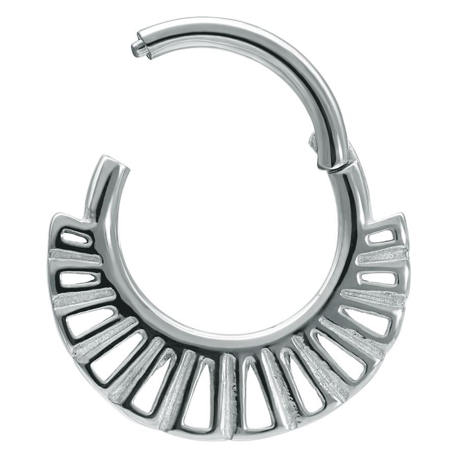 Ethno Septum Clicker -lävistyskoru on valmistettu korkealaatuisesta ruostumattomasta teräksestä ja sopii erinomaisesti septum-lävistykseen. Septum-korussa on kaareva saranatanko, joka tekee lävistyksen käyttämisestä helppoa – myös ilman apua!