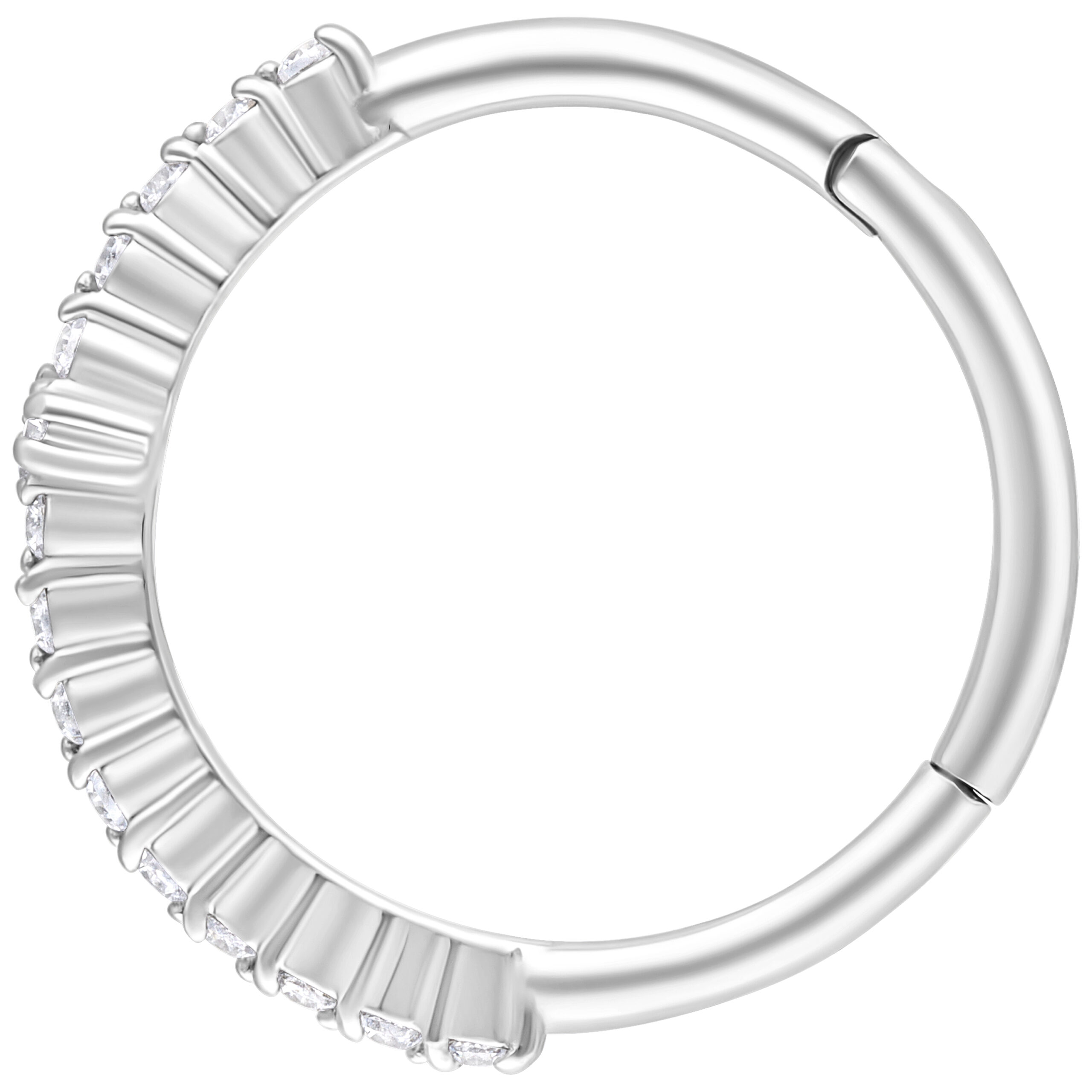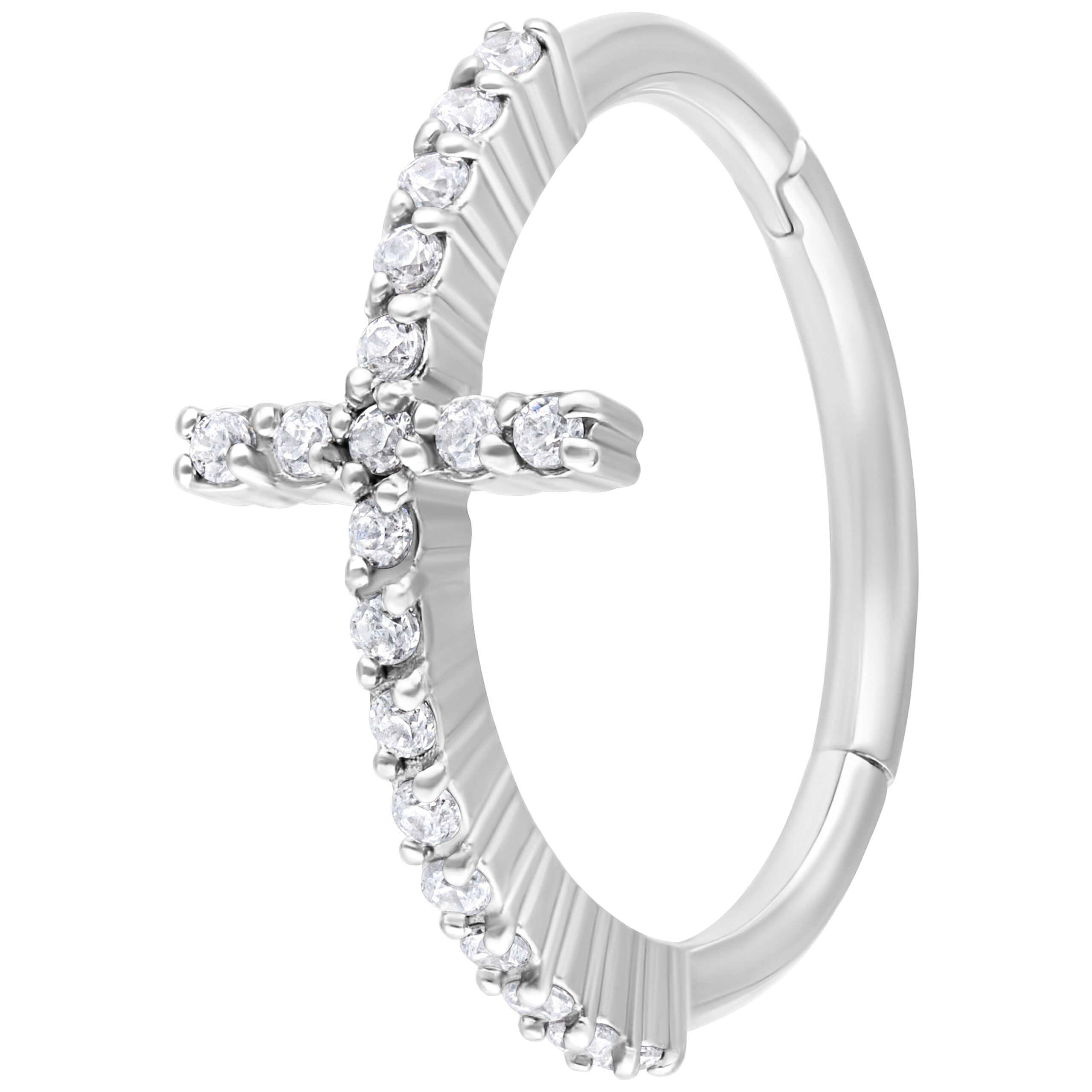 Korkealaatuinen Jewelled Cross Ring -lävistyskoru on Steel Basicline -mallistomme upeimpia rengaskoruja. Kuutiomaiset zirkonikristallit ovat todella kauniita! Uudista conch-lävistyksesi tällä tyylikkäällä, ristiaiheisella rengaslävistyksellä. Korun koot ovat ihanteellisia conch-lävistykseen. Saranoidun sulkemismekanismin ansiosta lävistys on erittäin helppo vaihtaa myös ilman apua. Löydä tyylisi uudelleen!
