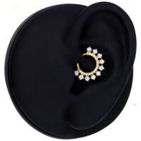 Titaani on kevyt, erittäin ihoystävällinen ja poikkeuksellisen kestävä, mikä tekee siitä ihanteellisen jokapäiväiseen käyttöön. Turvallinen ja helppokäyttöinen clicker-mekanismi tekee korusta sopivan septum- ja daith-lävistyksiin. Crystal Halo -clicker on täydellinen valinta niille, jotka arvostavat elegantteja koruja hienostuneella ja sädehtivällä viimeistelyllä.