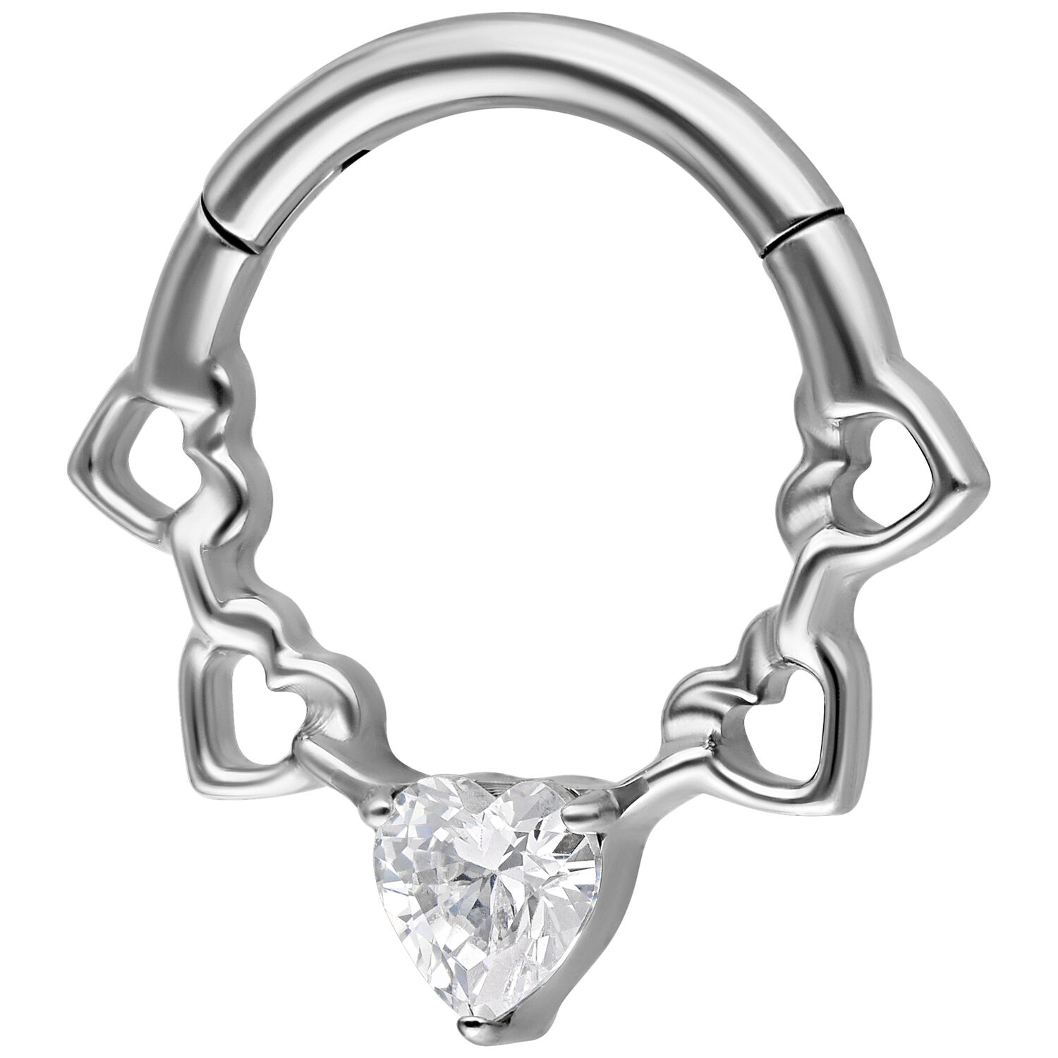 Crystal Hearts Septum Clicker – Titanium