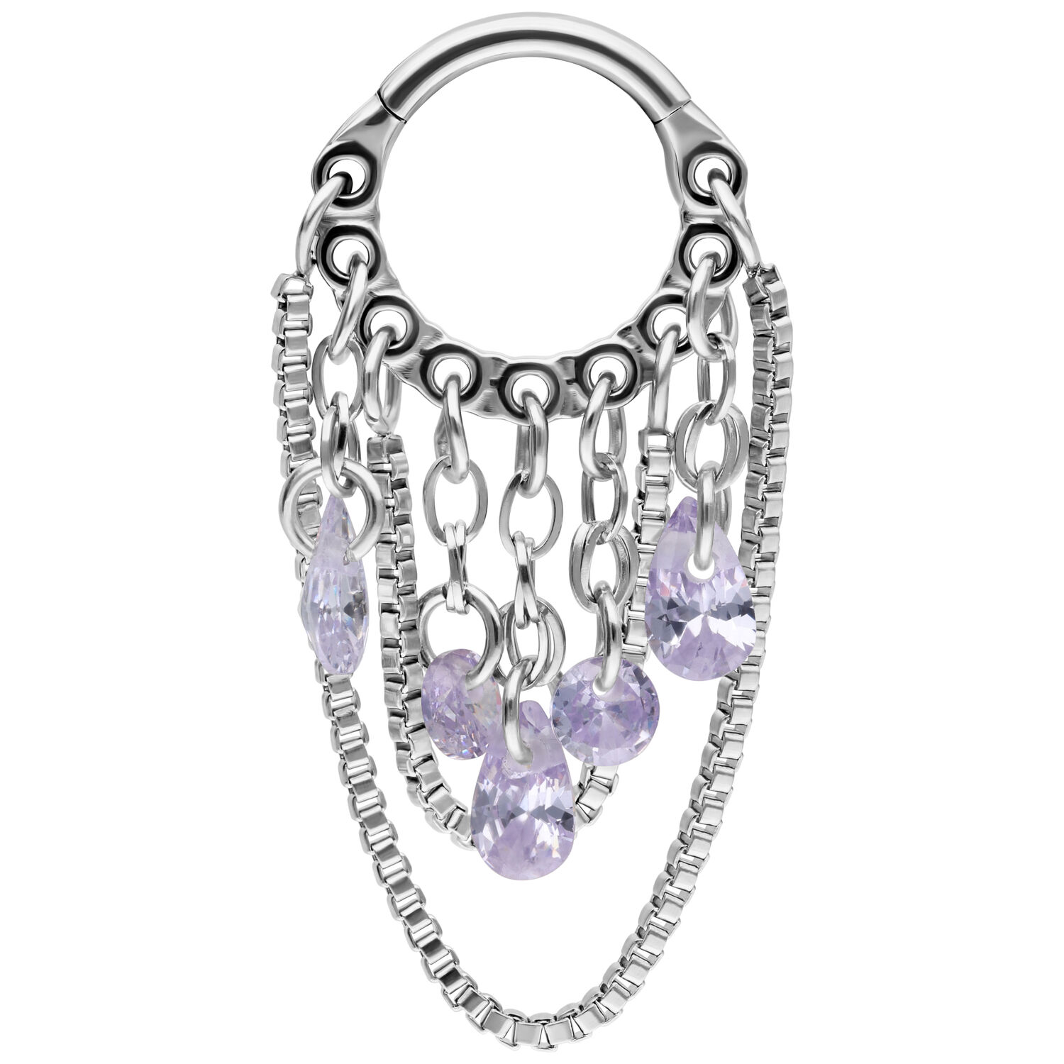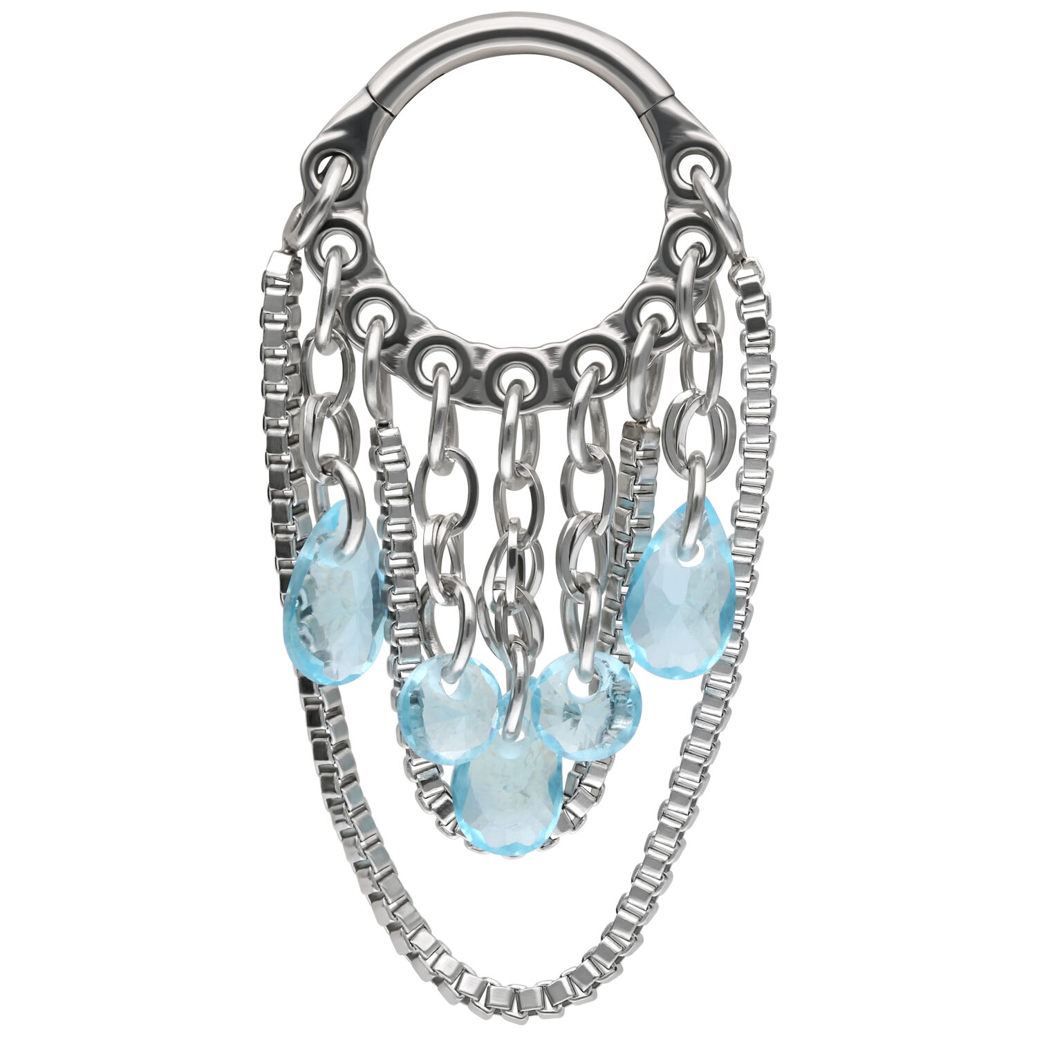 Crystal Snakechain Clicker -lävistysrengas on ylellinen, kiillotetusta titaanista valmistettu lävistyskoru, joka yhdistää urbaanit käärmeketjut häikäiseviin koristekristalleihin. Kerrostettu, ilmeikäs ja moderni – tämä clicker on enemmän kuin vain lävistyskoru. Se on kannanotto.
