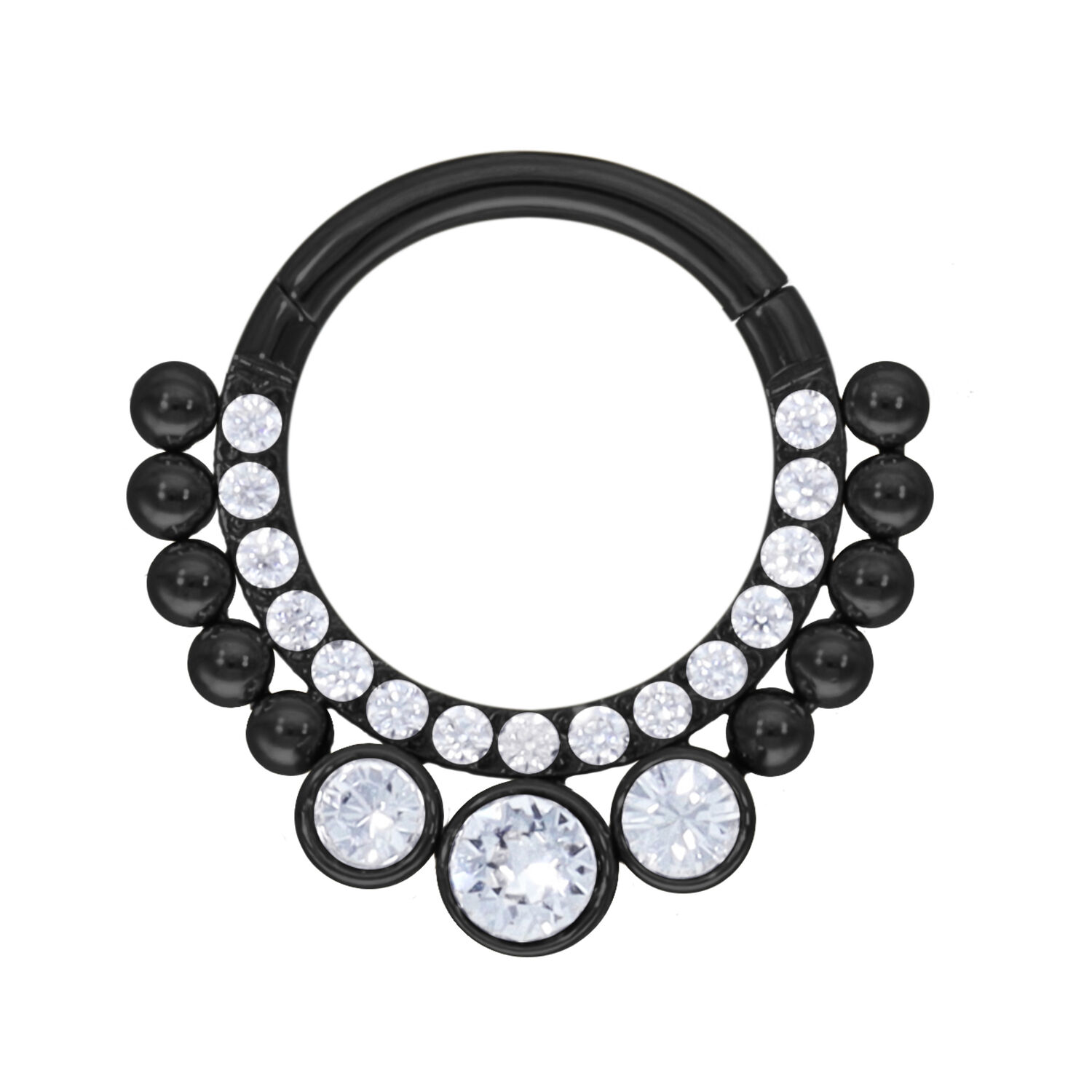 Unser Crystal Tears Clicker ist aus hochwertigem Edelstahl hergestellt und ist ideal für Dein Septum Piercing geeignet. Das Piercing besitzt einen gebogenen Scharnierstab, welcher Dir eine einfache Handhabung beim Einsetzen des Piercings ermöglicht – und das alles ganz ohne Hilfe! Getoppt wird es durch das super schicke und elegante Design mit einzeln gefassten Kristallen.