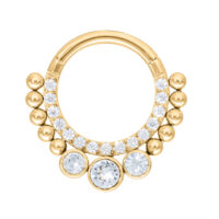 Unser Crystal Tears Clicker ist aus hochwertigem Edelstahl hergestellt und ist ideal für Dein Septum Piercing geeignet. Das Piercing besitzt einen gebogenen Scharnierstab, welcher Dir eine einfache Handhabung beim Einsetzen des Piercings ermöglicht – und das alles ganz ohne Hilfe! Getoppt wird es durch das super schicke und elegante Design mit einzeln gefassten Kristallen.