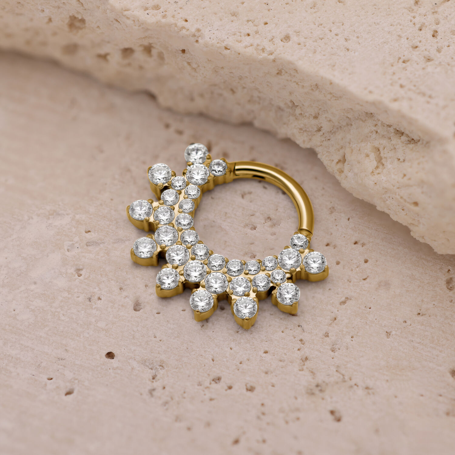 Grade 23 -titaanista valmistettu koru tarjoaa ensiluokkaista laatua ja mukavan käyttökokemuksen. Turvallinen clicker-suljin mahdollistaa helpon asennuksen ja luotettavan pidon. Täydellinen septum- ja daith-lävistyksiin, se on ihanteellinen kaikille, jotka haluavat tehdä voimakkaan tyylilauseen.