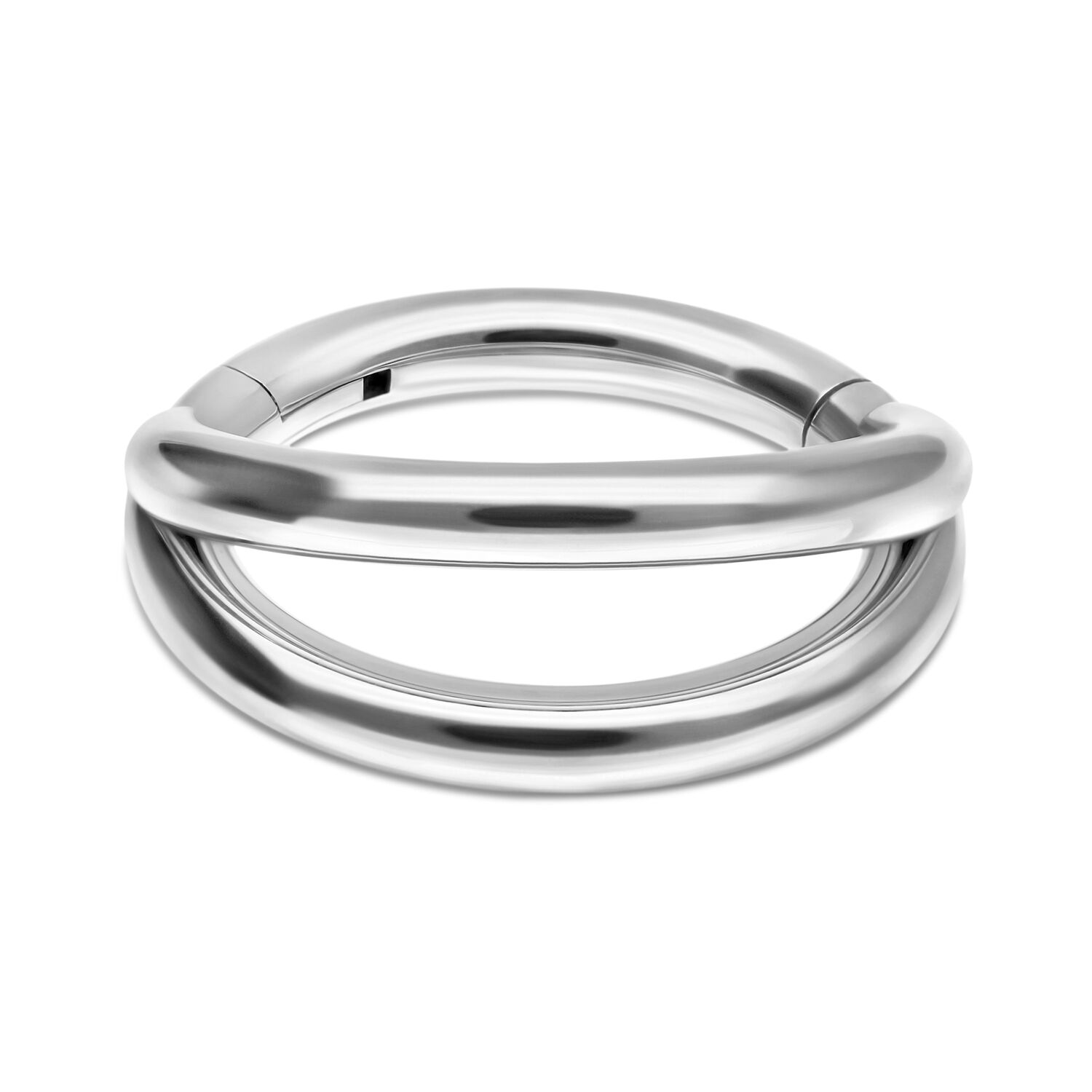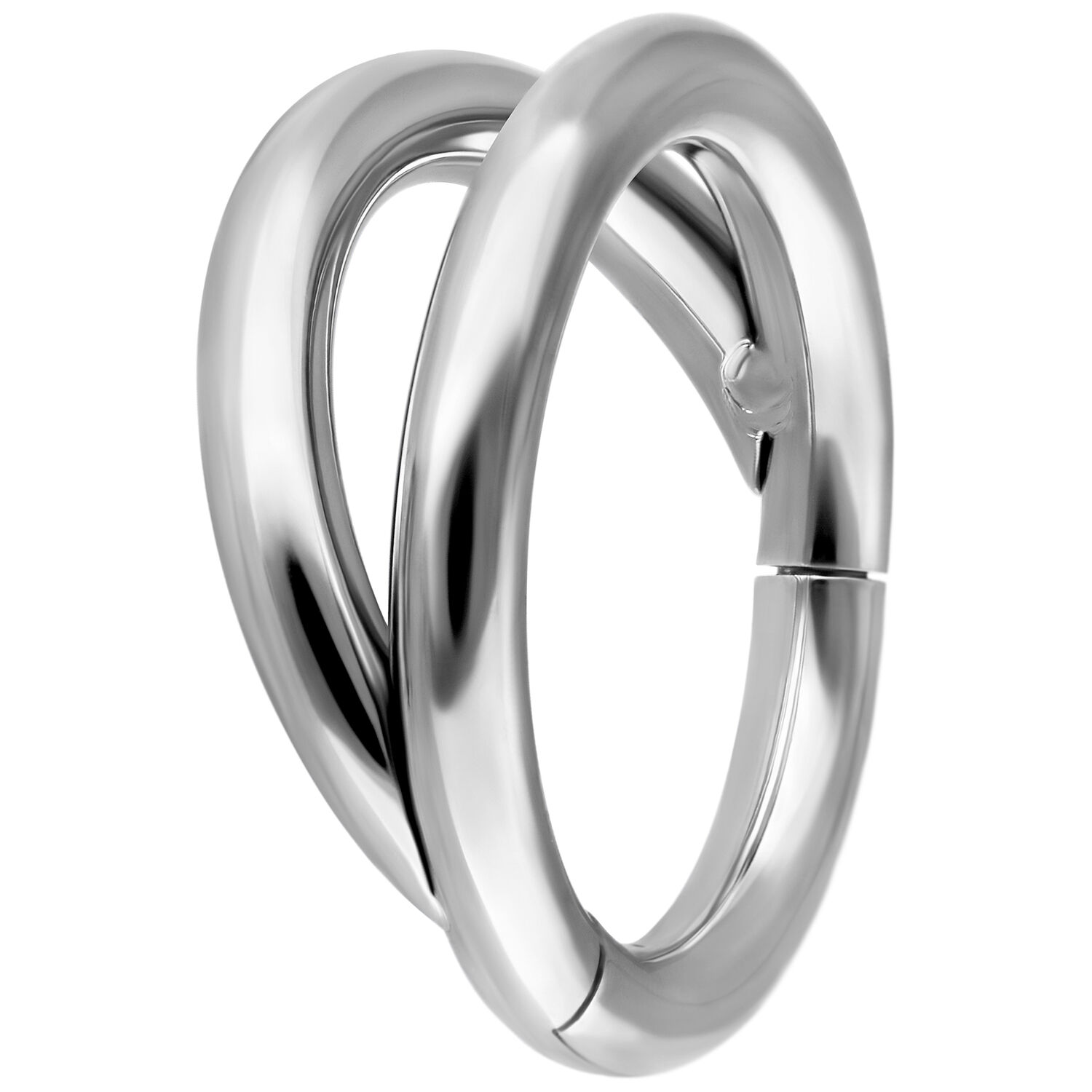 Korkealaatuinen Double Row Clicker -lävistysrengas erottuu edukseen kahden renkaan optisella illuusiolla. Anna luovuutesi lentää, sillä voit käyttää tätä rengasta lähes mihin tahansa lävistykseen. Se sopii erityisesti nenä- (nostril), lobe- tai helix-lävistyksiin. Lävistysrenkaan saranoidun lukon ansiosta se on erittäin helppo irrottaa ja laittaa paikalleen myös ilman apua. Uudista itsesi!
