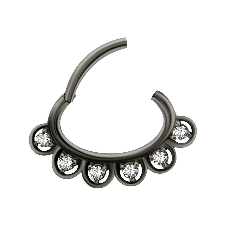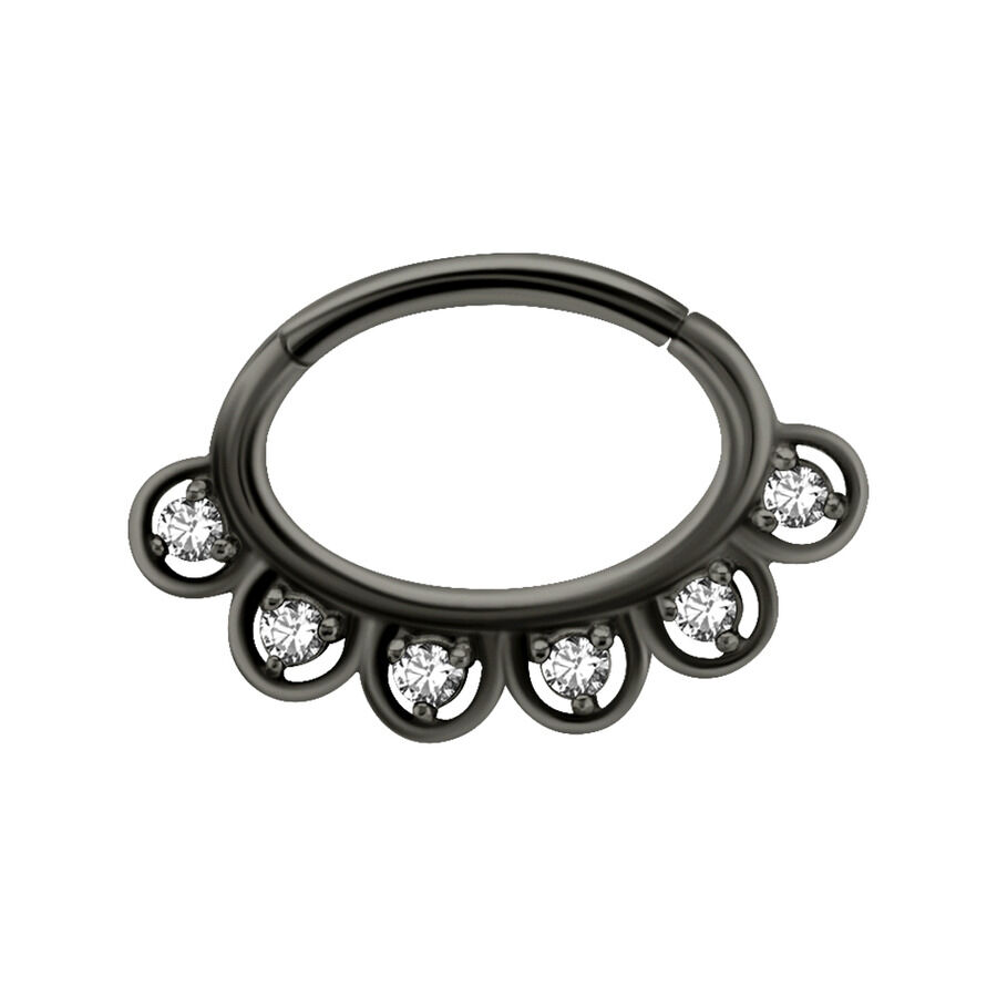 This high quality Sparking hinged ring is made of black-coloured steel and is striking due to its wonderful zirconia stones, that make you shine already from the far! The segment ring has a hinged lock which enables an easy inserting of the piercing. The piercing is perfectly made for your septum piercing but it can also be used for several other piercings such as for your ear piercing or your smiley (labial frenulum) piercing.