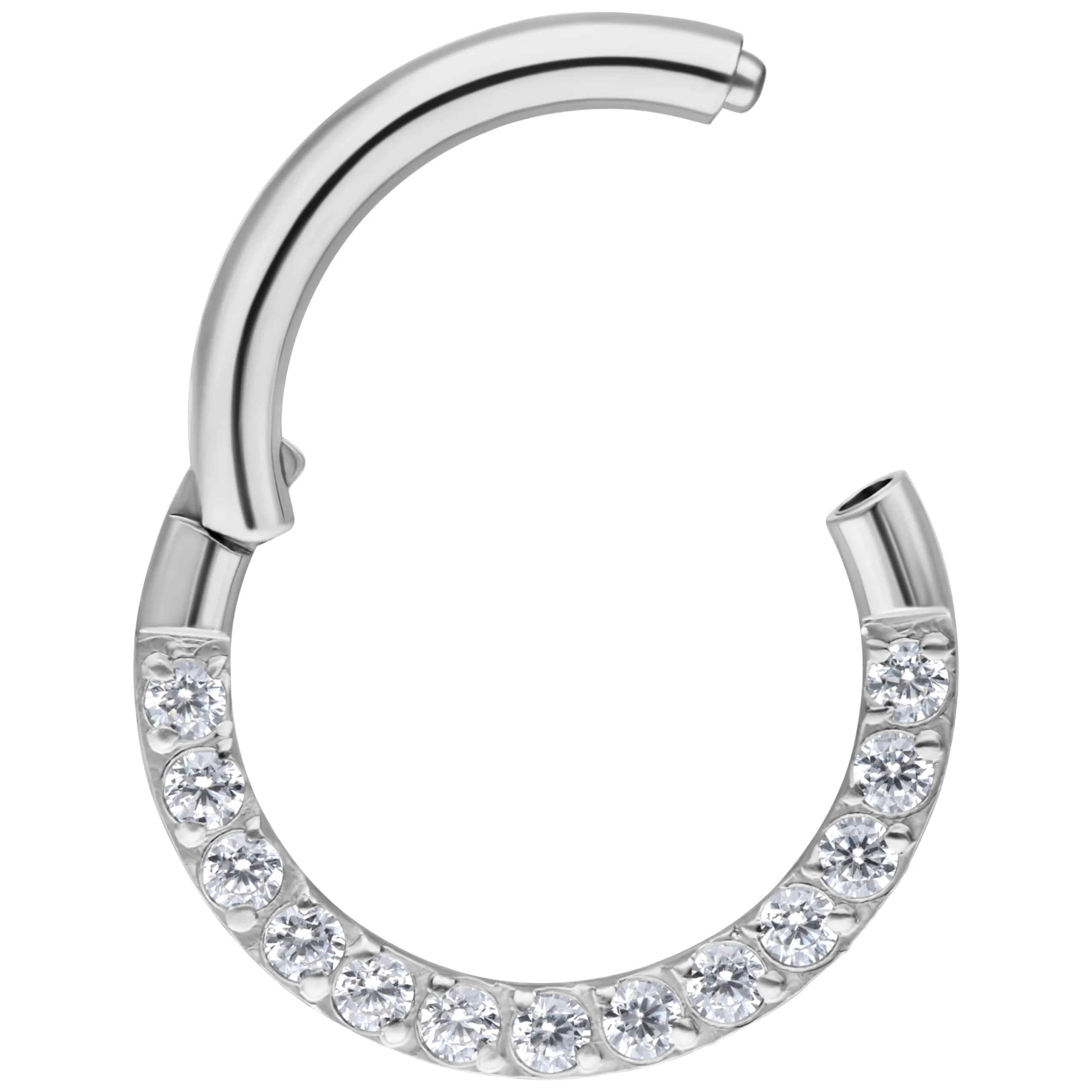 Laadukkaat rengaskorut on varustettu monilla klassisilla zirkonikristalleilla, jotka on istutettu pavé-tyyliin. Päästä luovuutesi valloilleen, sillä voit käyttää lävistyskorua septum-, daith- ja helix-lävistyksessä. Septum-korun saranoidun lukon ansiosta lävistys on erittäin helppo vaihtaa myös ilman apua.