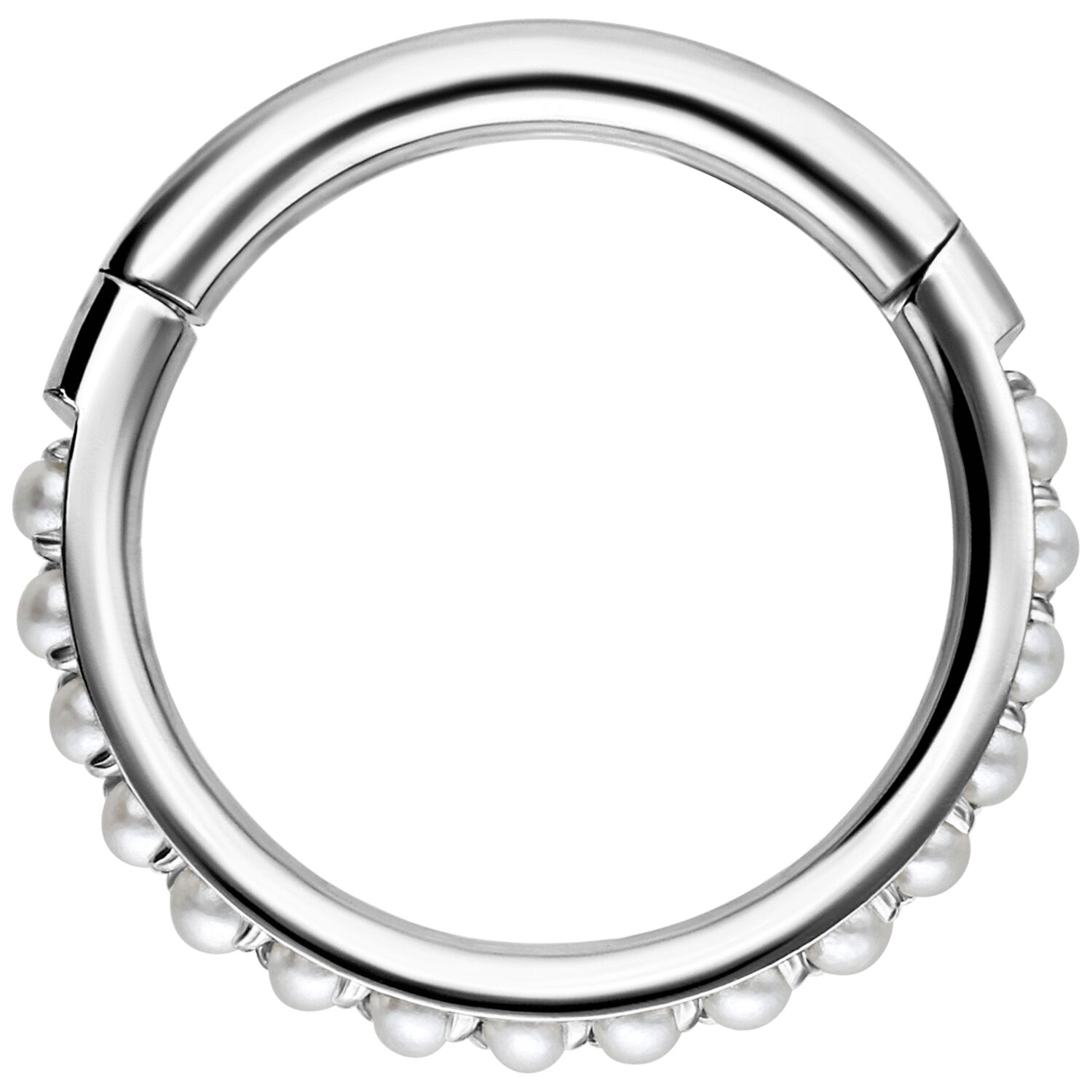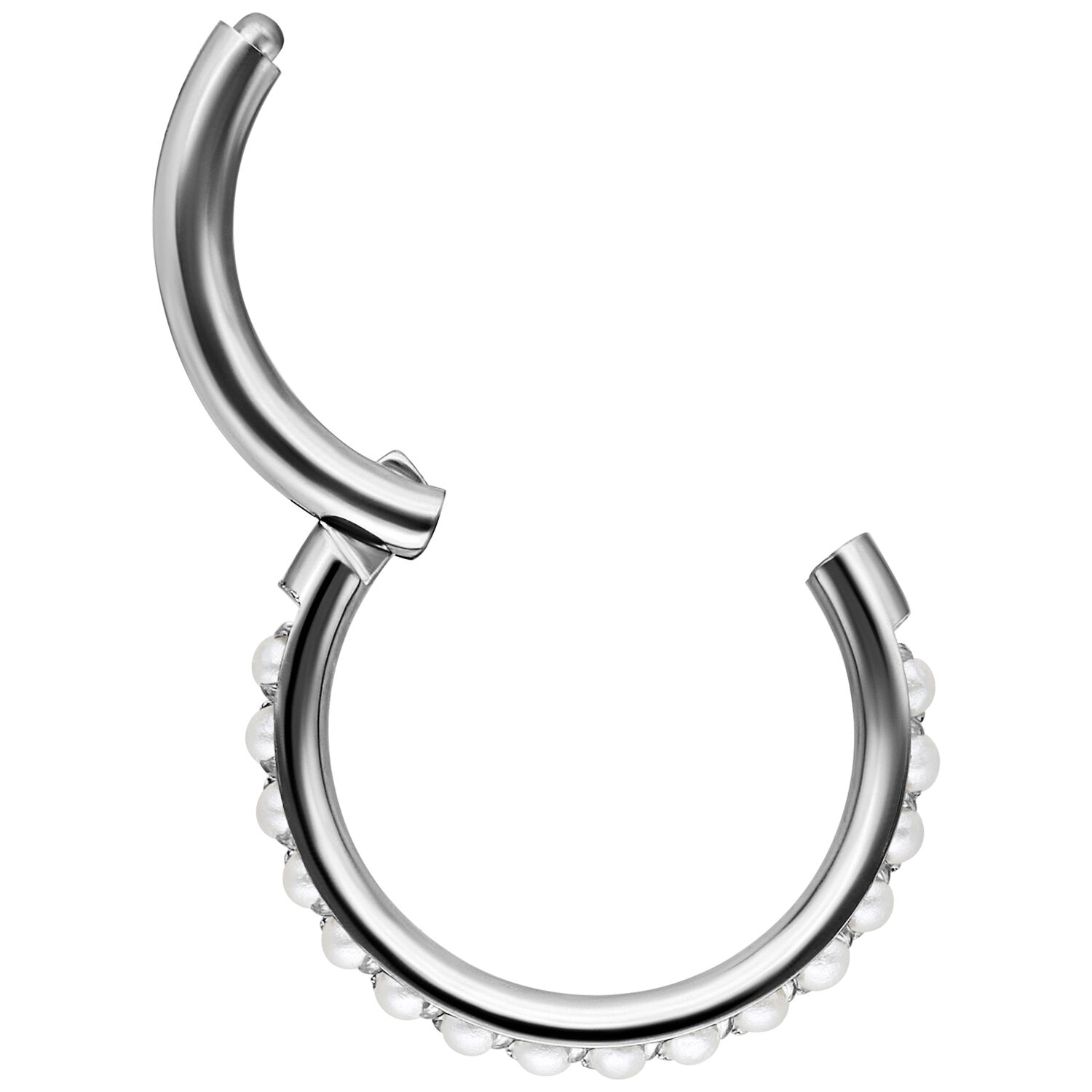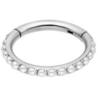 The elegant Pearl Clicker combines minimalist design with classic beauty. The delicately arranged pearls give the clicker a refined and harmonious appearance, adding a stylish accent to your piercing.