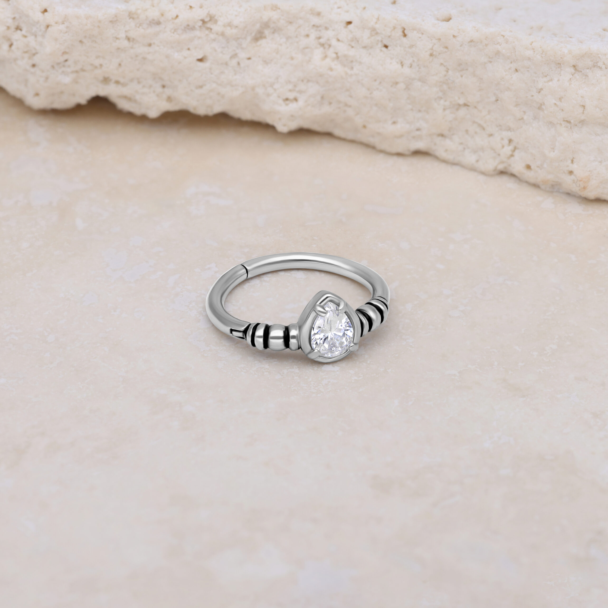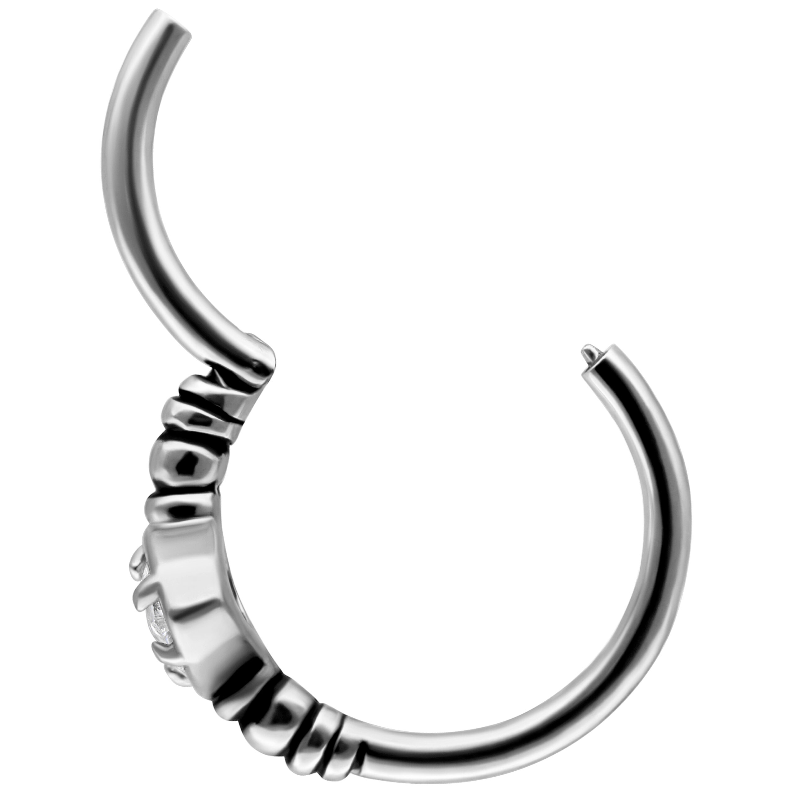 Tämä laadukas, bezel-tyylinen lävistysrengas erottuu erityisesti zirkoniakristallien ansiosta, jotka saavat sinut säteilemään jo kaukaa. Anna luovuudellesi vapaat kädet, sillä tätä korua voi käyttää melkein mihin tahansa korvan lävistykseen. Se sopii erityisen hyvin conch- ja helix-lävistykseen. Saranoidun lukon ansiosta lävistys on erittäin helppo vaihtaa ilman apua.
