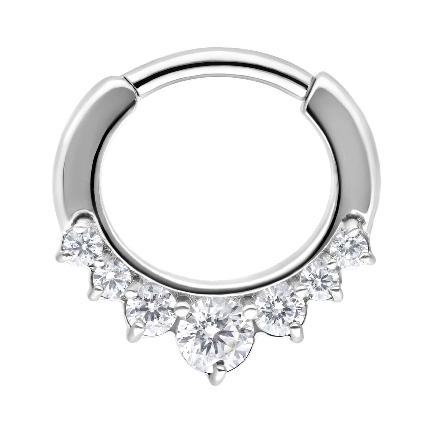 Dieser hochwertige Sparkling Septum Clicker aus silbernem Edelstahl fällt besonders durch seine wunderschönen Zirkoniasteine auf, die dich bereits aus der Ferne zum Strahlen bringen. Der Segmentring besitzt einen Scharnierverschluss, welcher ein einfaches Einsetzen des Piercings ermöglicht. Das Piercing eignet sich besonders für dein Septum Piercing, kann aber auch ebenfalls am Ohr oder am Lippenband (Smiley) getragen werden.