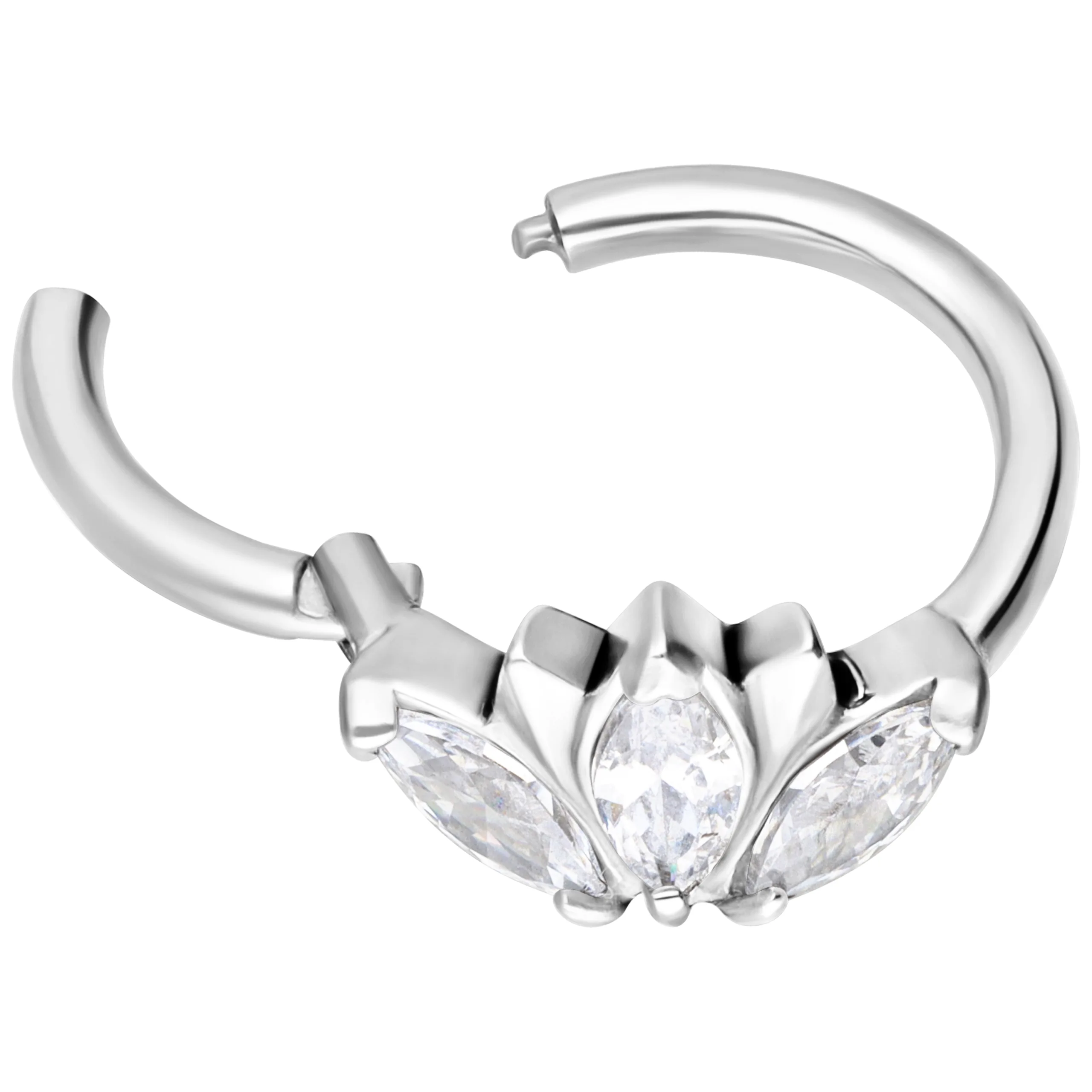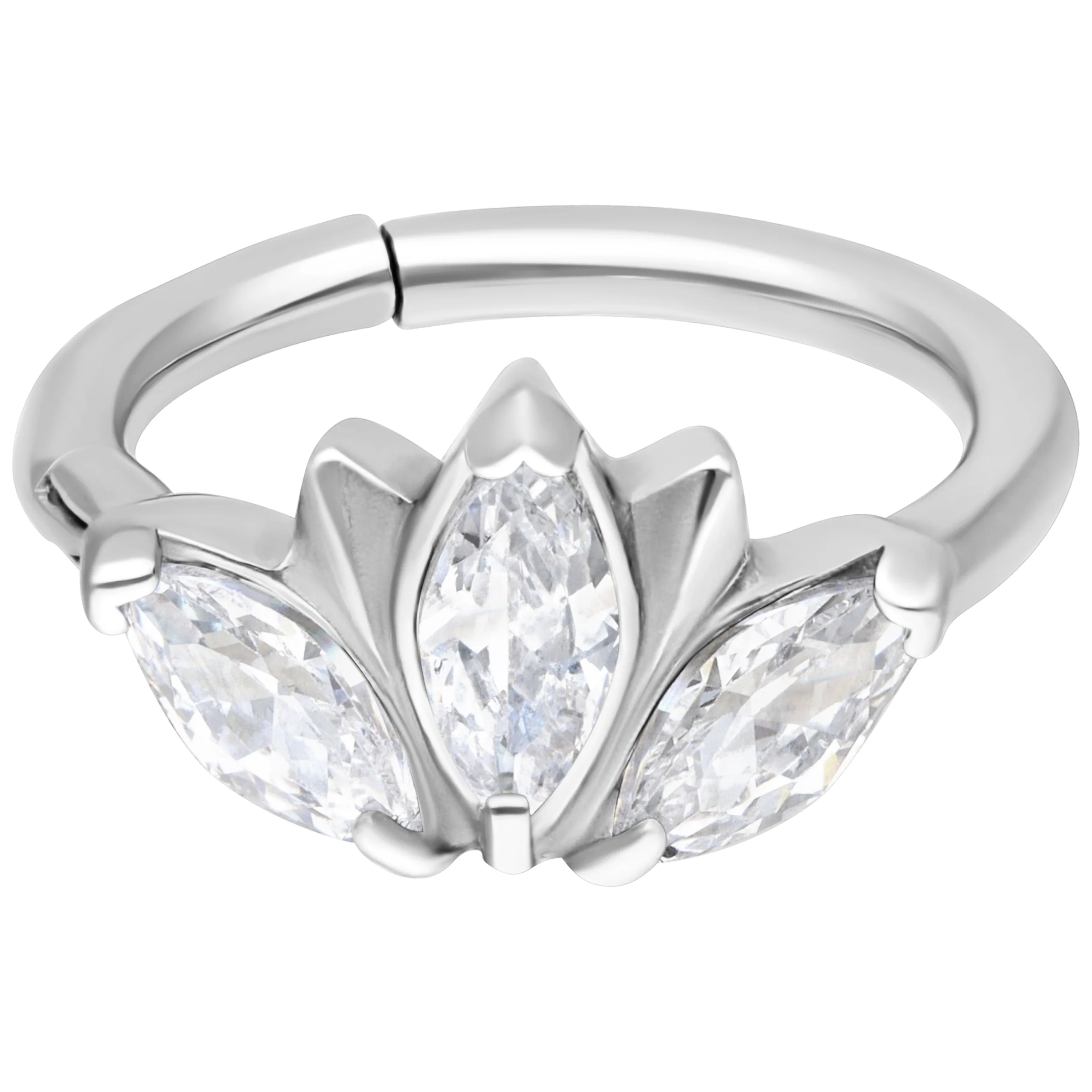 Tämä laadukas, kiiltävä lävistysrengas erottuu erityisesti kolmen soikean zirkoniakristallin ansiosta, jotka saavat sinut säteilemään jo kaukaa. Anna luovuudellesi vapaat kädet, sillä tätä korua voi käyttää melkein mihin tahansa korvan lävistykseen. Se sopii erityisen hyvin helix-lävistykseen. Saranoidun lukon ansiosta lävistys on erittäin helppo vaihtaa ilman apua.