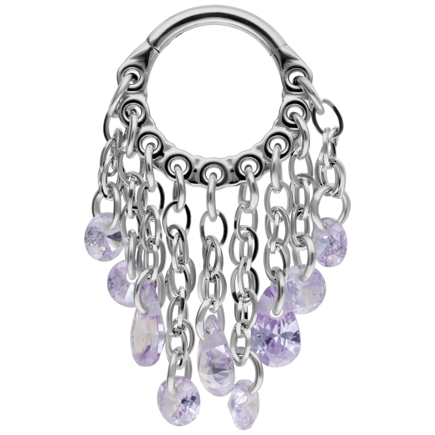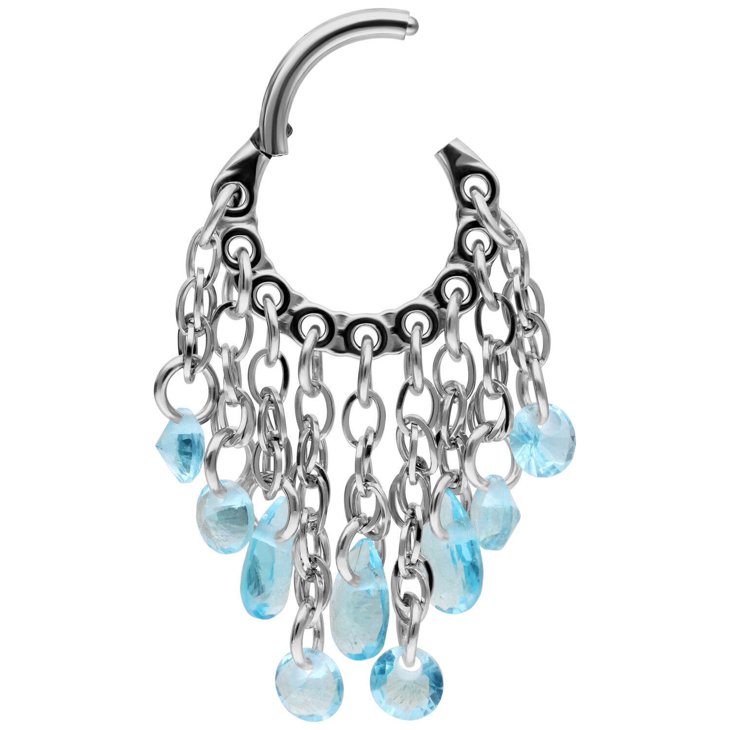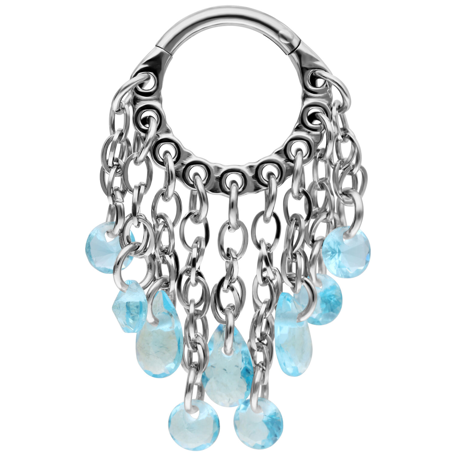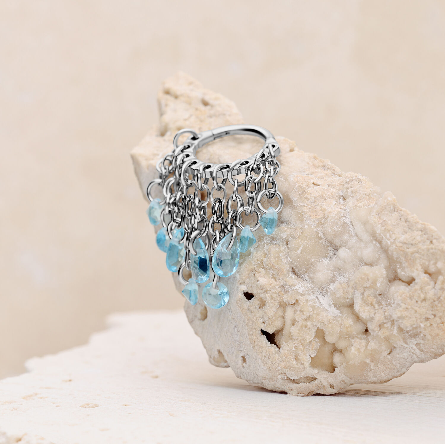 Waterfall Crystal Clicker -lävistysrengas lisää tyyliisi sulavaa liikettä. Tämä elegantti, kiillotetusta titaanista valmistettu koru yhdistää herkät ketjuelementit kimalteleviin kristallipisaroihin. Muotoilu joka vangitsee valon jokaisella liikkeellä ja lisää dynaamista hohdetta. Kevyt, säteilevä ja yksityiskohtia täynnä oleva koru on tehty niille, jotka arvostavat ainutlaatuisuutta.