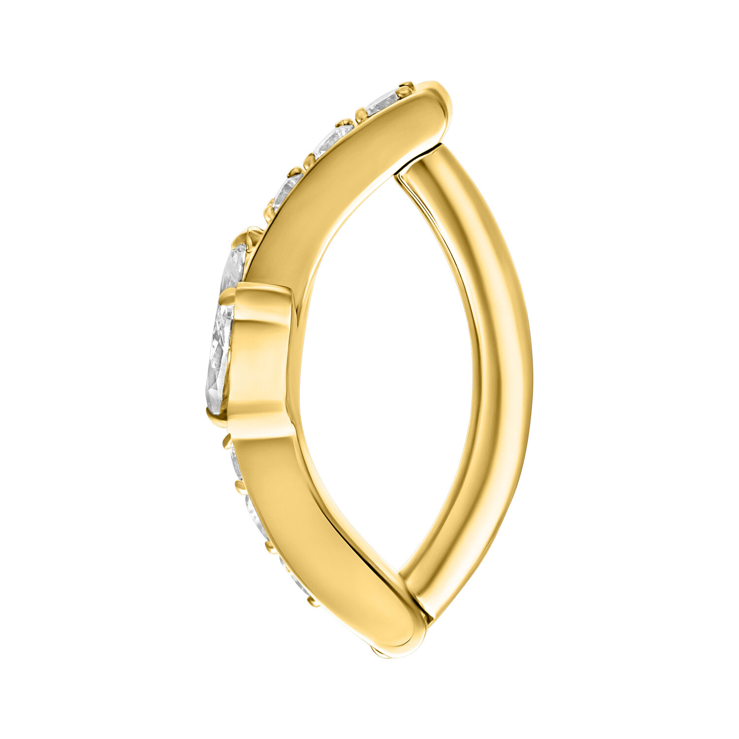 Lotus Crystal Belly Arch Clicker on valmistettu korkealaatuisesta titaanista ja siinä on useita kauniita, kimaltelevia koristekiviä. Tangon pituus on 10,0 mm. Sitä on saatavana hopeisena, mustana, kullanvärisenä tai ruusunvärisenä kristallinkirkkailla jalokivillä. Napsautusmekanismi takaa yksinkertaisen ja ihoystävällisen käytön.