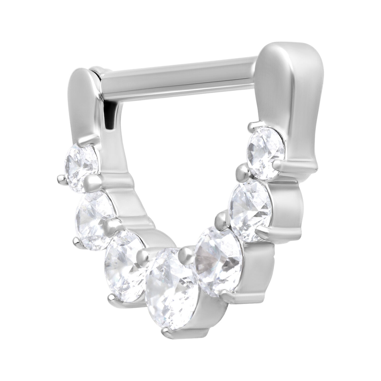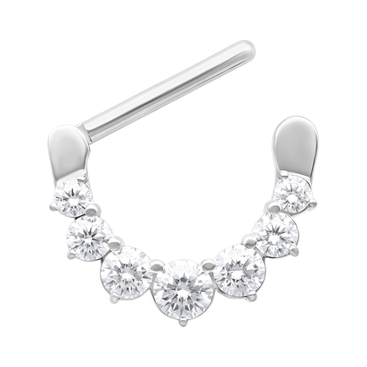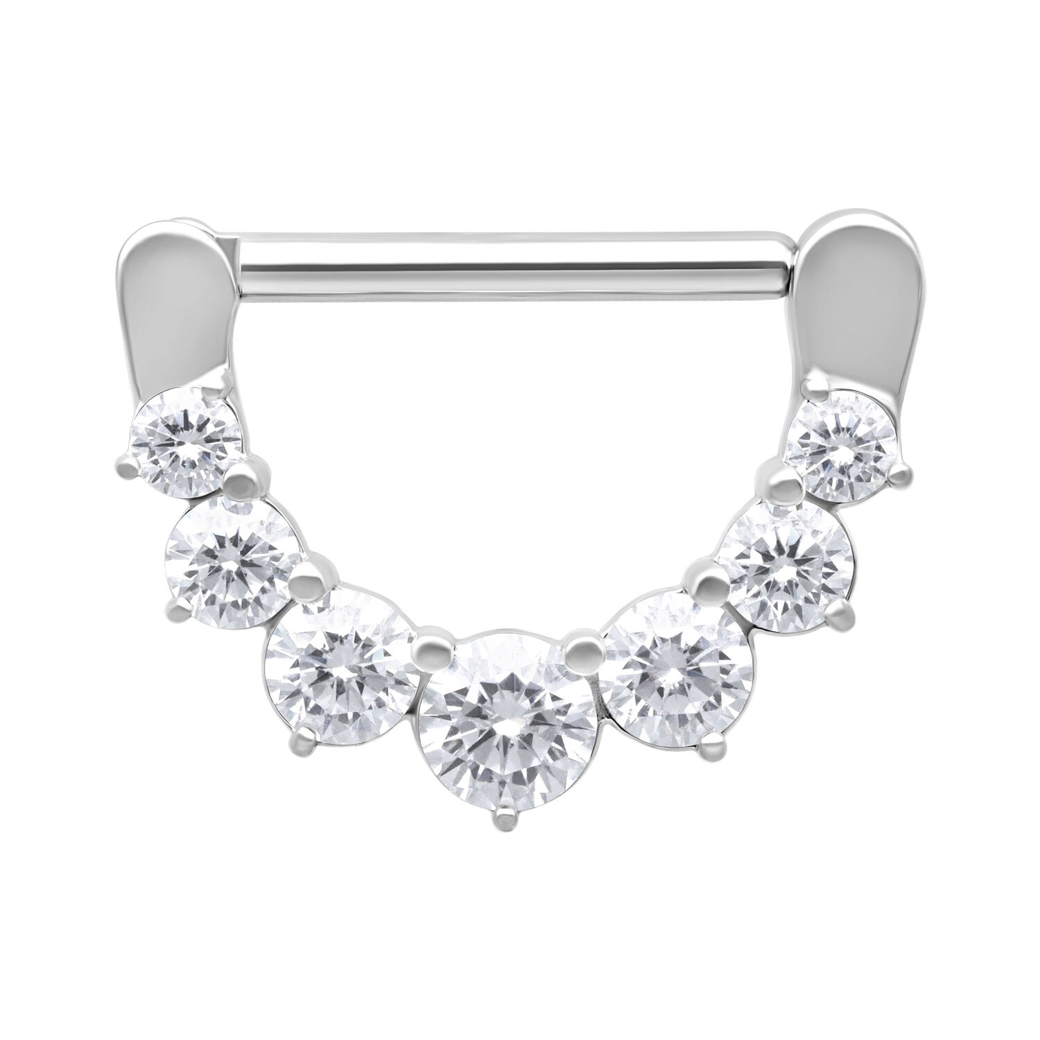 Das Piercing besteht aus klassischem, hochwertigem Edelstahl. Einen besonderen Eye-Catcher geben die runden, gefassten, Kristalle, die bei Lichteinfall wunderschön schimmern.