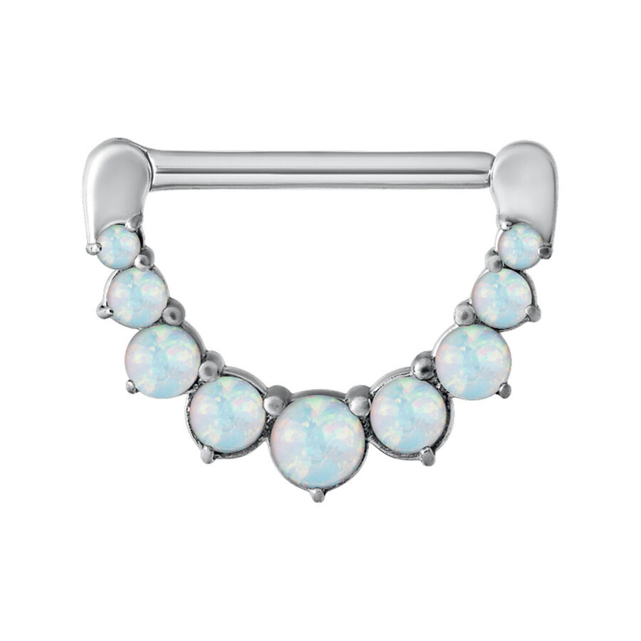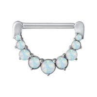Das Piercing besteht aus klassischem, hochwertigem Edelstahl. Einen besonderen Eye-Catcher geben die runden, gefassten, Kristalle, die bei Lichteinfall wunderschön schimmern.