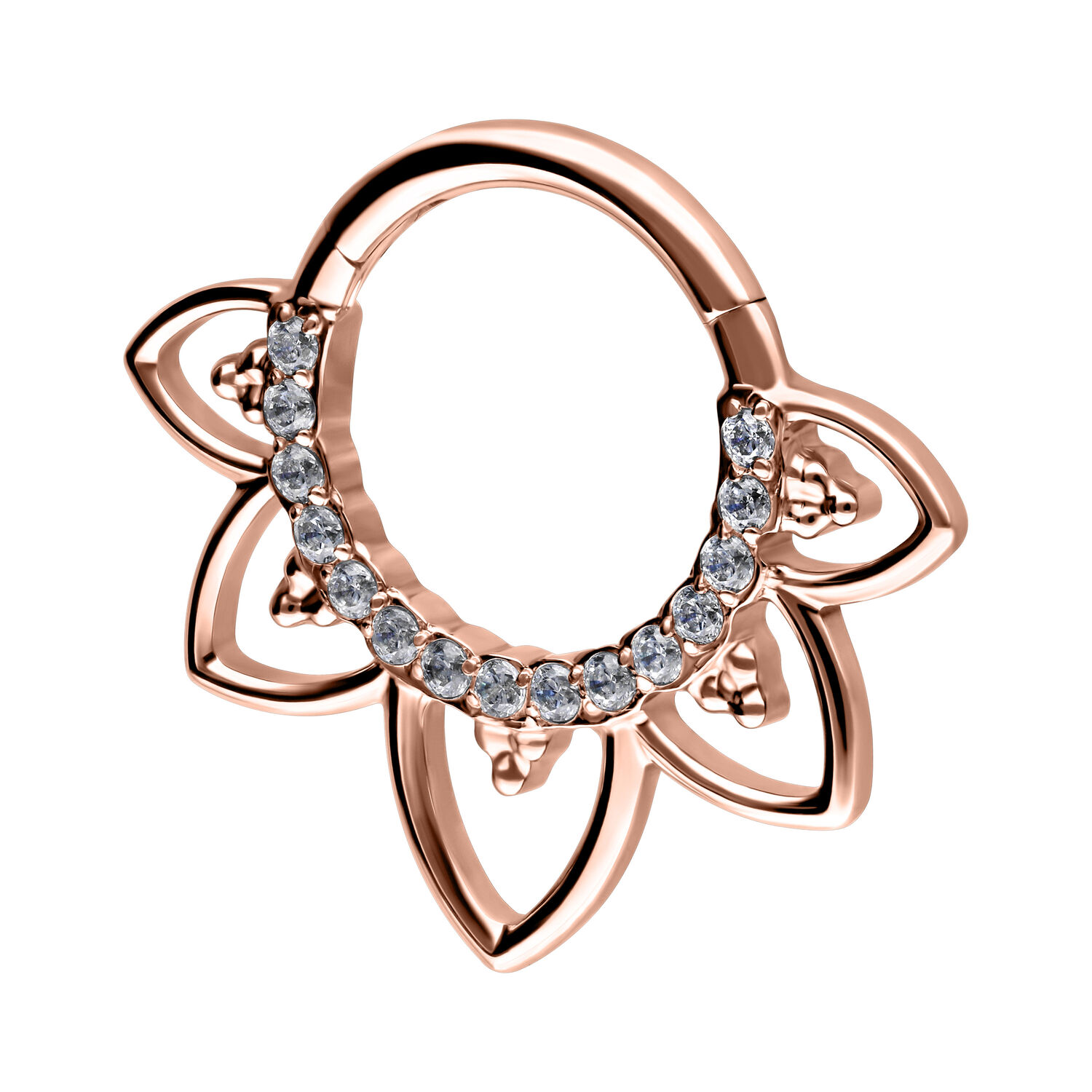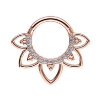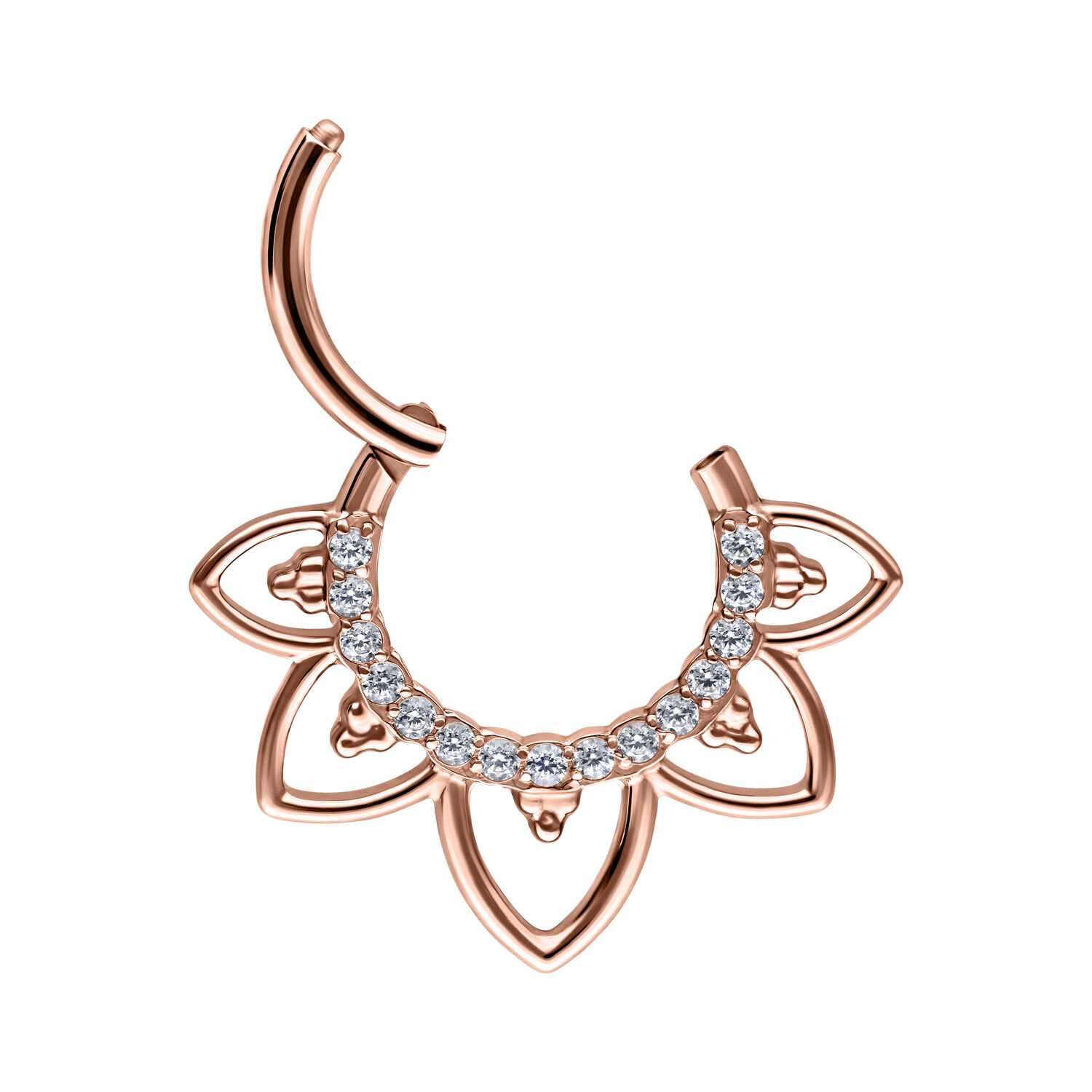 Oriental Crystal Septum -lävistysrengas on valmistettu korkealaatuisesta ruostumattomasta teräksestä ja se sopii erinomaisesti septum- tai daith-lävistykseen. Lävistyksessä on kaareva saranatanko, jonka avulla lävistyksen paikalleen asettaminen on helppoa.