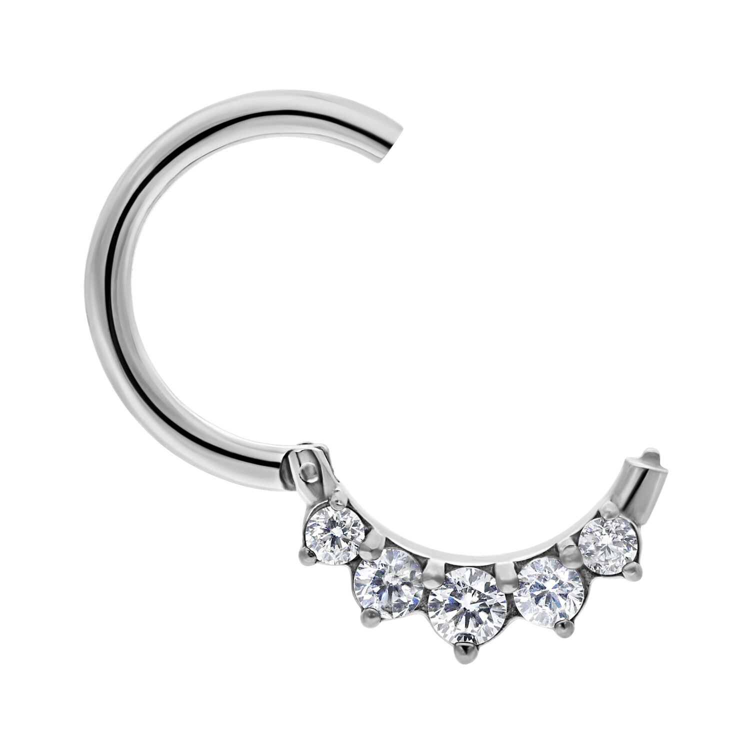 Glamour Hinged Clicker -rengaskoru on valmistettu korkealaatuisesta ruostumattomasta teräksestä ja sopii erinomaisesti septum-lävistykseen. Lävistysrenkaassa on kaareva saranatanko, jonka avulla voit helposti asettaa korun lävistykseesi – ja täysin ilman muiden apua! Clicker-rengas on koristeltu äärimmäisen tyylikkäällä ja elegantilla kristalliosiolla.
