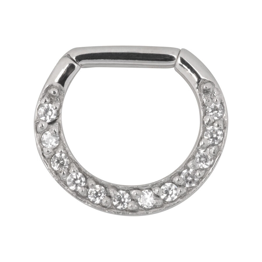 Unser Multi Jewelled Septum Clicker ist aus hochwertigem, silbernem Edelstahl hergestellt und ist ideal für dein Septum Piercing. Das Piercing besitzt einen geraden Scharnierstab und ermöglicht dir daher eine einfache Handhabung beim Einsetzen und Rausholen des Piercings – und das alles ohne Hilfe! Getoppt wird es durch den schicken Kristall in der unteren Mitte. Der Stein ist so gefasst, dass ein Rausfallen verhindert wird. Alternativ kann das Piercing auch zum Beispiel für dein Daith Piercing verwendet werden. Der gerade Stahlsteg besitzt eine Länge von ca. 7.0 mm. Der Stein besitzt einen Durchmesser von ca. 1.5 mm.