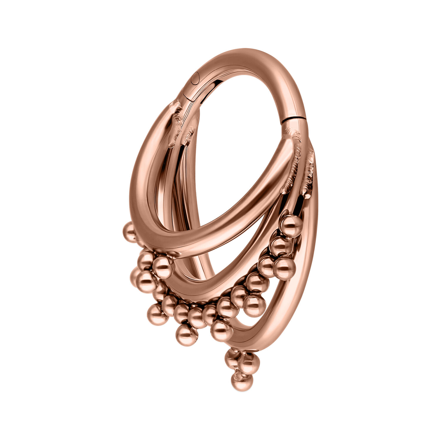 Etsitkö erityistä lävistystä, joka vakuuttaa sinut ilman glitteriä? Silloin Triple Oriental Clicker -lävistyskoru on kuin tehty sinulle! Titaaninen clicker-lävistyskoru lisää ripauksen itämaista kauneutta lookiisi ja sopii jokapäiväiseen käyttöön sekä erikoistilaisuuksiin. Hemmottele itseäsi asusteella, joka korostaa tyyliäsi ja saa sinut loistamaan – ilman bling-blingiä!