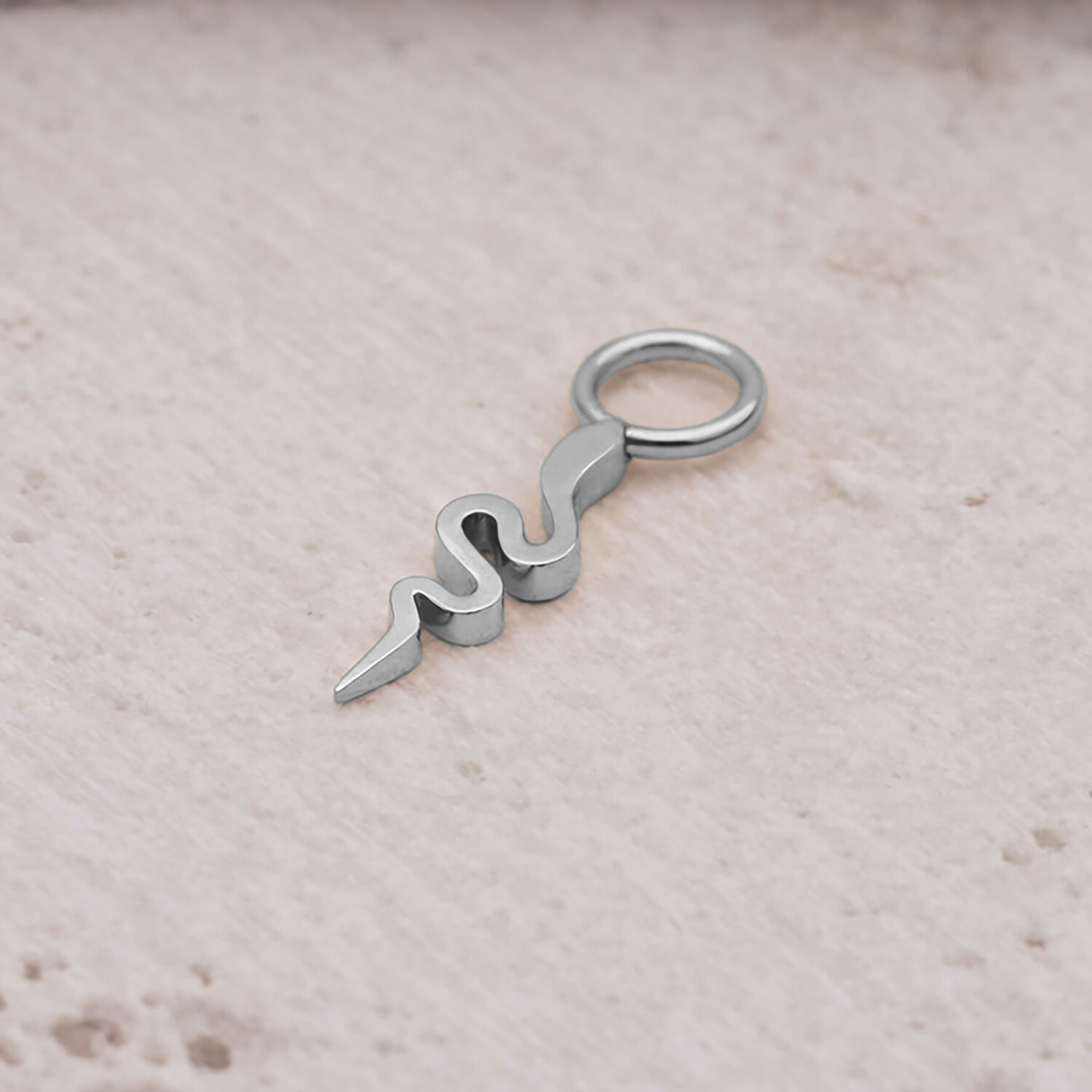 With its compact size and balanced proportions, the Snake Pendant is ideal for rook, helix, vertical helix, or lobe piercings. Whether worn as a subtle accent or a statement piece, it complements a wide range of piercing styles.