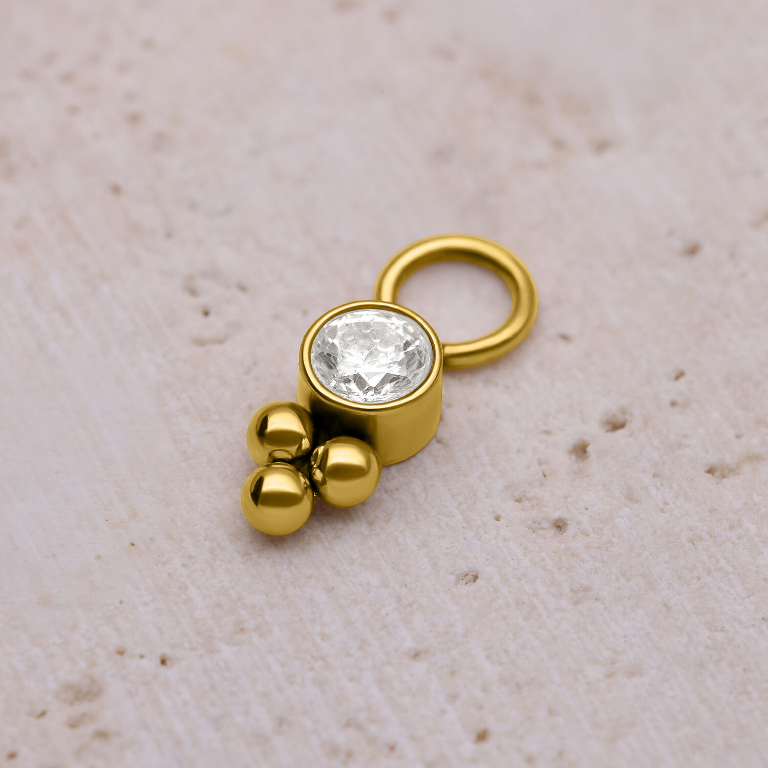 Riipus sopii käytettäväksi clickereissä ja on täydellinen helix-, rook-, vertical helix- tai lobe-lävistyksiin. Moderni yksityiskohta niille, jotka arvostavat selkeitä muotoja ja ripauksen kimallusta.