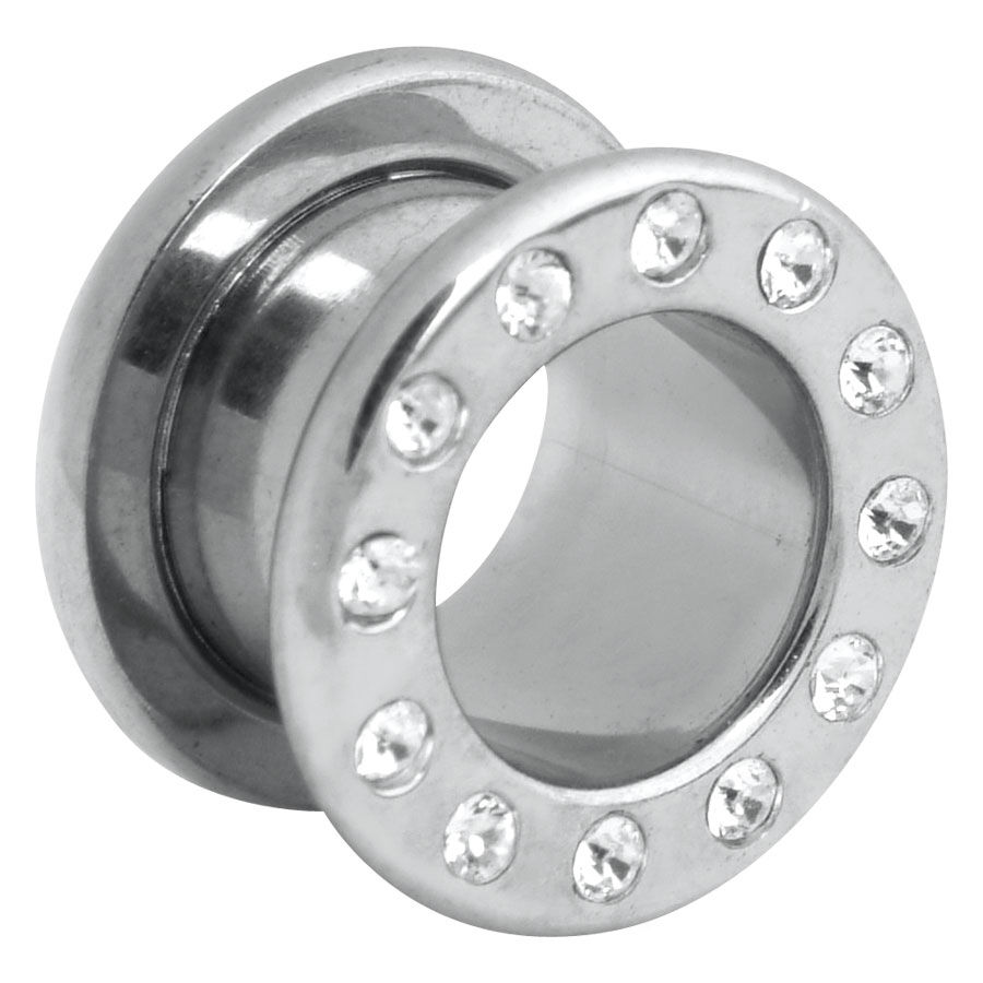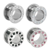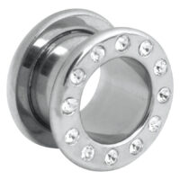 Der Jewelled Flesh Tunnel der Steel Highline® ist 7.0 mm tief und mit hochwertig verarbeiteten Kristallen besetzt. Er ist externally threaded, der Ring wird auf das Außengewinde des Tunnels geschraubt. Die Ränder des Tunnels fügen sich um das Earlobe und garantieren einen perfekten Halt. Alle Tunnel der Steel Highline® sind trotz ihrer zusätzlichen PVD-Beschichtung sterilisierbar und aufgrund der Hautfreundlichkeit des Materials auch für Allergiker absolut unbedenklich. Als Stretching-Beginner oder schon Erfahrenerer in Sachen sanfter Dehnung ist dieser Tunnel für Dich garantiert die richtige Wahl, denn es gibt ihn in den Größen 3.0 bis 10.0 mm (in 1er-Schritten) und 12.0 bis 20.0 mm (in 2er-Schritten)! Bei den Kristallfarben kannst du zwischen Weiß (CC), Pink (OK), Aquamarin (LB) und Schwarz (BK) wählen.